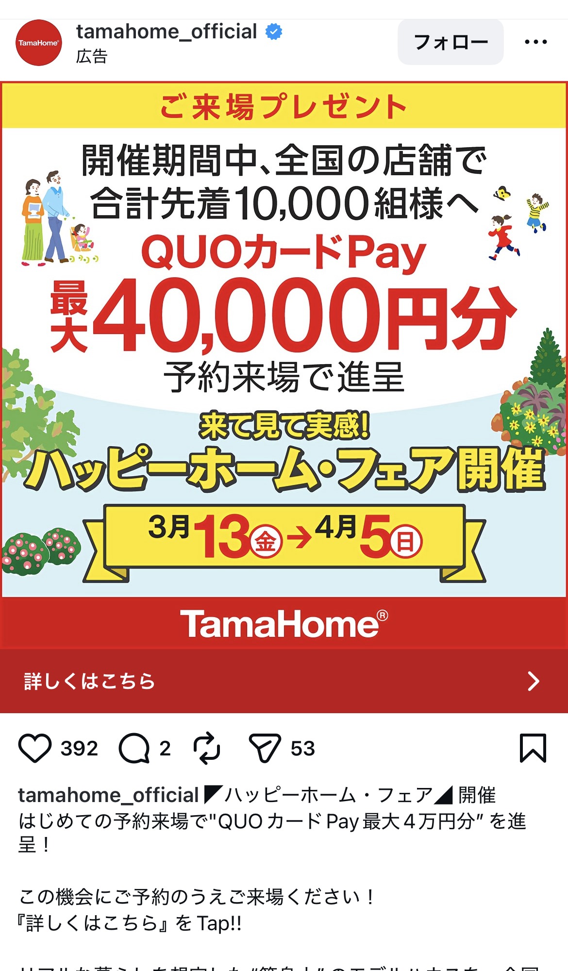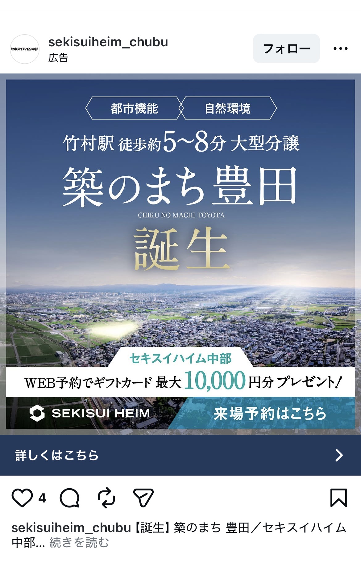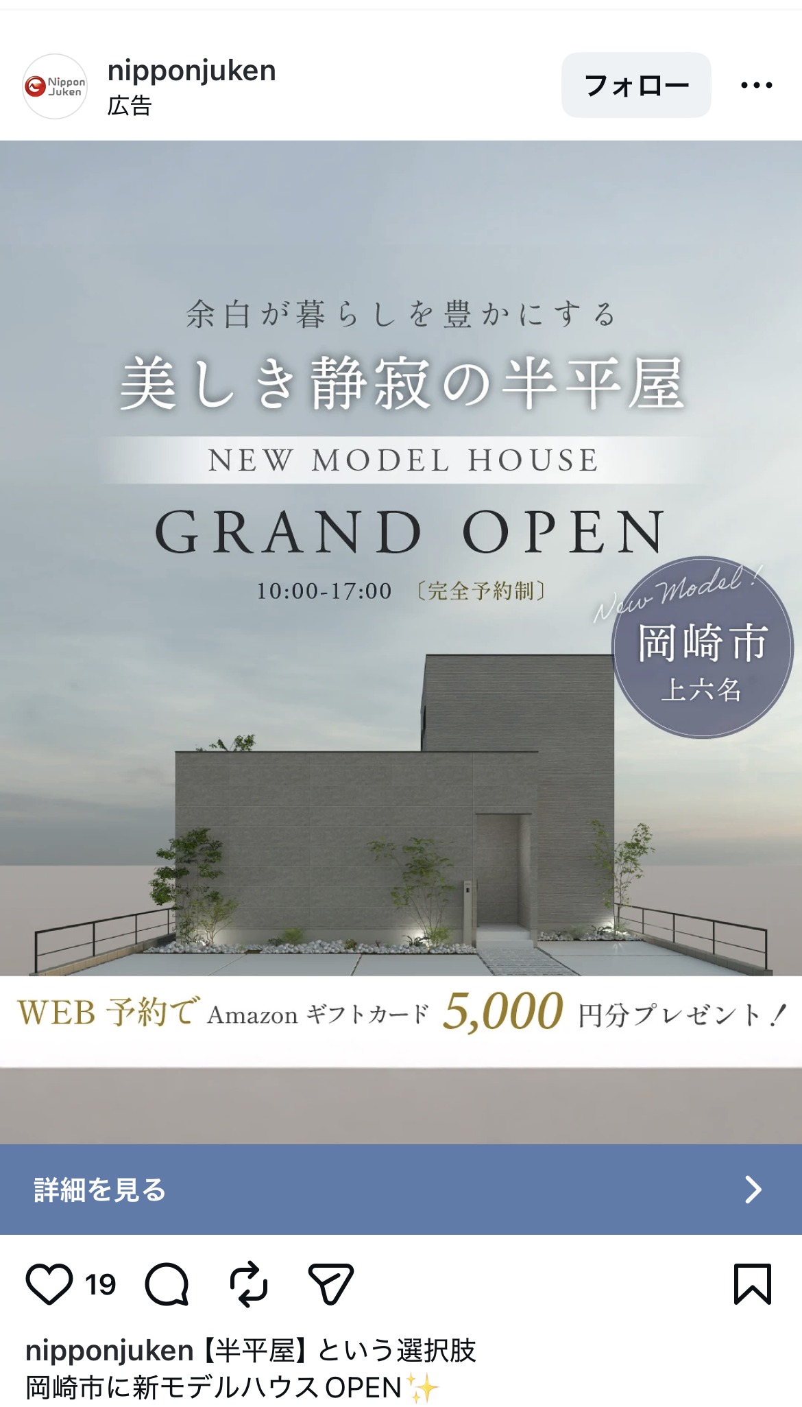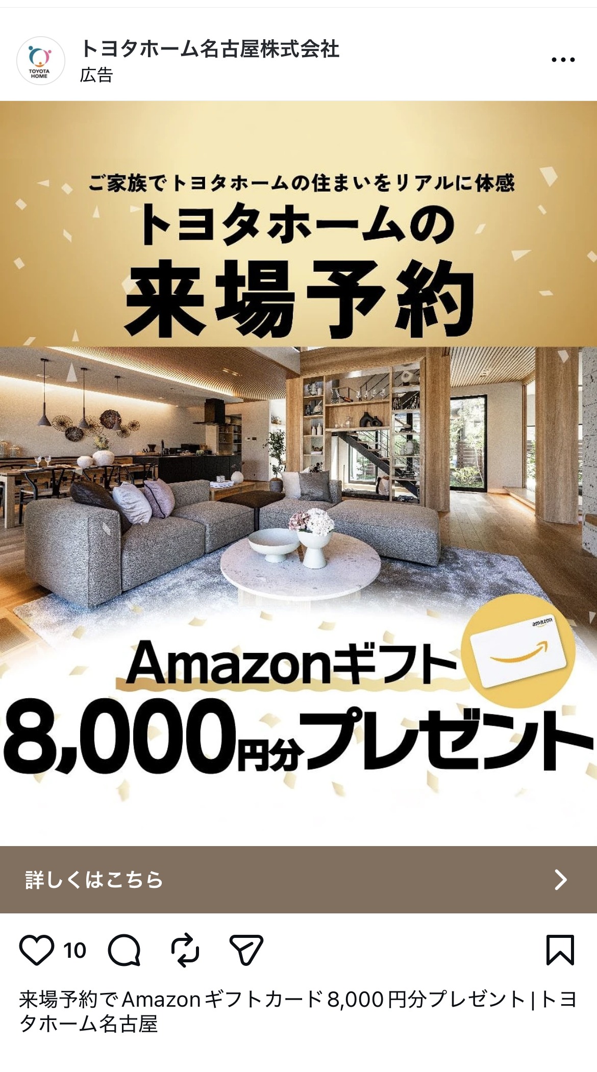 nipponjuken グレー 住宅・不動産 女性 ビジュアル写真 この広告主のライブラリをみる daikichi_franchise オレンジ・きいろ BtoB・事業者向け スクール・講座・コミュニティ 起業家・経営者 初心者 テキストメイン この広告主のライブラリをみる youhouse__daiyuu あお 住宅・不動産 女性 ママ ビジュアル写真 この広告主のライブラリをみる arrgallery_official あお 住宅・不動産 起業家・経営者 男性 ビジュアル写真 この広告主のライブラリをみる sanritsupc_official あお 住宅・不動産 女性 男性 ビジュアル写真 この広告主のライブラリをみる tamahome_official あか 住宅・不動産 初心者 イラスト・図解 この広告主のライブラリをみる ロゴスホームオフィシャル あお 住宅・不動産 初心者 ビジュアル写真 この広告主のライブラリをみる 積水化学工業株式会社 セキスイハイムグル… ベージュ・ゴールド 住宅・不動産 女性 男性 ビジュアル写真 この広告主のライブラリをみる housejapan_takahama あお 住宅・不動産 女性 男性 ビジュアル写真 この広告主のライブラリをみる SUUMO(スーモ) 黒 住宅・不動産 初心者 ビジュアル写真 この広告主のライブラリをみる スーモカウンター ピンク 住宅・不動産 スクール・講座・コミュニティ 初心者 ビジュアル写真 この広告主のライブラリをみる mics131 ピンク 住宅・不動産 BtoB・事業者向け 初心者 イラスト・図解 この広告主のライブラリをみる sekisuiheim_chubu あお 住宅・不動産 男性 ビジュアル写真 この広告主のライブラリをみる トヨタホーム名古屋株式会社 ベージュ・ゴールド 住宅・不動産 女性 ビジュアル写真 この広告主のライブラリをみる 神経と身体の研究ノート 黒 健康・整体・ウェルネス スクール・講座・コミュニティ 起業家・経営者 イラスト・図解 この広告主のライブラリをみる nell_mattress あお 住宅・不動産 初心者 ビジュアル写真 この広告主のライブラリをみる 1 2 3 … 76 次へ »