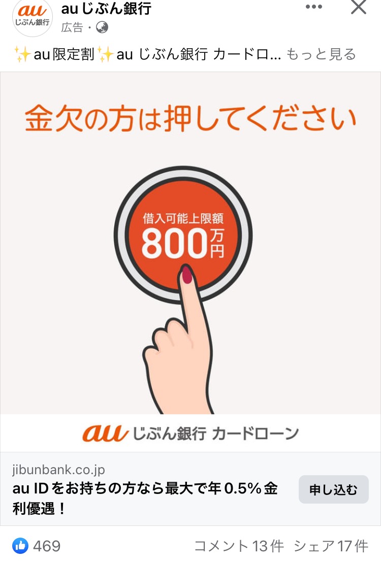マネカツ ピンク マネー・金融 スクール・講座・コミュニティ 女性 初心者 人物写真(モデル) この広告主のライブラリをみる JCB みどり マネー・金融 初心者 テキストメイン この広告主のライブラリをみる au じぶん銀行 オレンジ・きいろ マネー・金融 初心者 イラスト・図解 この広告主のライブラリをみる Stripe むらさき マネー・金融 BtoB・事業者向け 起業家・経営者 テキストメイン この広告主のライブラリをみる