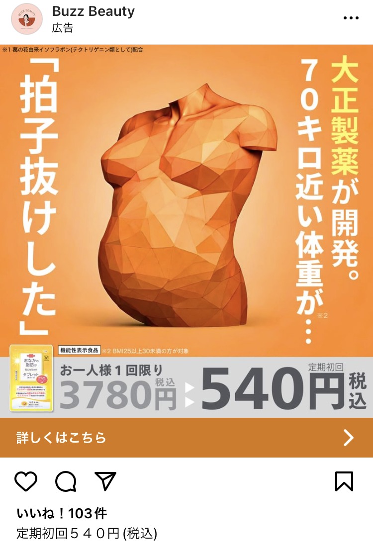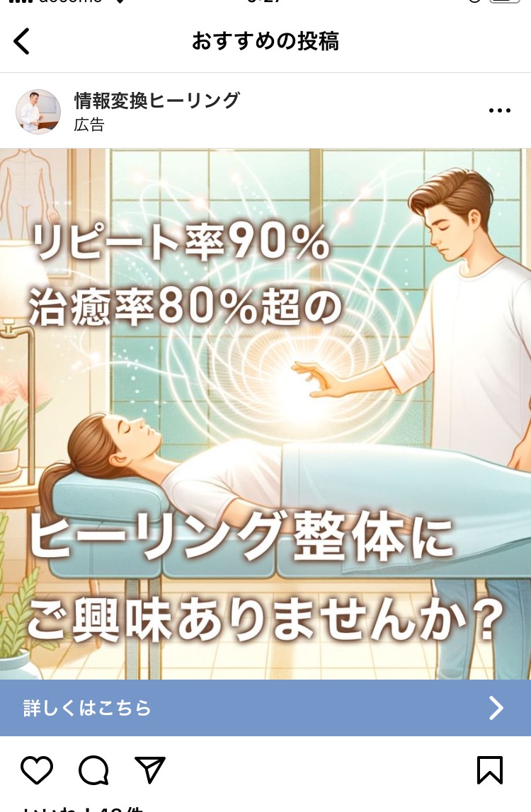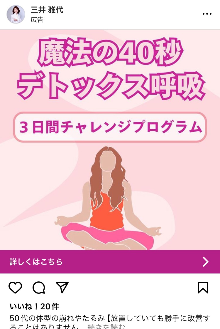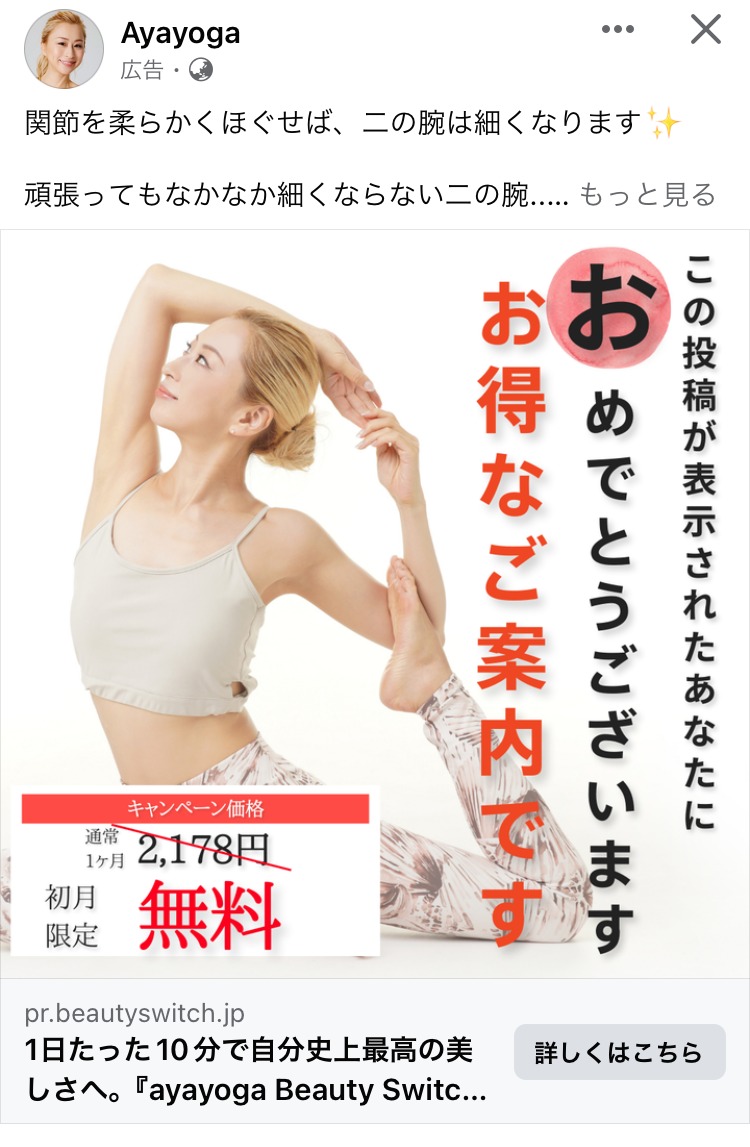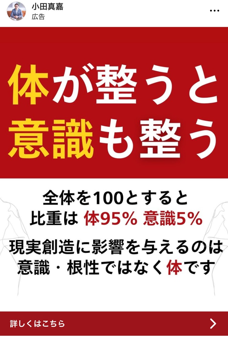 SOELU あお 健康・整体・ウェルネス 女性 人物写真(モデル) この広告主のライブラリをみる Body Granola|ボディグラノーラ オレンジ・きいろ 健康・整体・ウェルネス 女性 人物写真(モデル) この広告主のライブラリをみる Amepla 黒 ファッション・アパレル 健康・整体・ウェルネス 女性 テキストメイン この広告主のライブラリをみる ココロとカラダの交差点 白 健康・整体・ウェルネス コーチング・心理学 初心者 イラスト・図解 この広告主のライブラリをみる Ayayoga ピンク 健康・整体・ウェルネス 女性 人物写真(モデル) この広告主のライブラリをみる 情報変換ヒーリング みどり 健康・整体・ウェルネス スピリチュアル・占い 女性 イラスト・図解 この広告主のライブラリをみる bisisei.tsukuitomomi ピンク 健康・整体・ウェルネス スクール・講座・コミュニティ 女性 人物写真(本人) この広告主のライブラリをみる 三井 雅代 ピンク 健康・整体・ウェルネス 女性 イラスト・図解 この広告主のライブラリをみる grandhimedic ベージュ・ゴールド 健康・整体・ウェルネス 起業家・経営者 テキストメイン この広告主のライブラリをみる 杉本錬堂【天城流施術大全】 あお 健康・整体・ウェルネス 初心者 イラスト・図解 人物写真(本人) この広告主のライブラリをみる delipicks_sub みどり 健康・整体・ウェルネス 女性 テキストメイン この広告主のライブラリをみる misignal_craif あお 健康・整体・ウェルネス 女性 男性 テキストメイン この広告主のライブラリをみる 小田真嘉 あか 健康・整体・ウェルネス コーチング・心理学 起業家・経営者 テキストメイン この広告主のライブラリをみる 一般社団法人認知症協会 黒 健康・整体・ウェルネス スクール・講座・コミュニティ 初心者 イラスト・図解 この広告主のライブラリをみる Buzz Beauty オレンジ・きいろ 健康・整体・ウェルネス 女性 テキストメイン この広告主のライブラリをみる lavayoga_official オレンジ・きいろ 健康・整体・ウェルネス 女性 人物写真(モデル) この広告主のライブラリをみる 投稿のページ送り 前へ 1 2 3 … 10 次へ