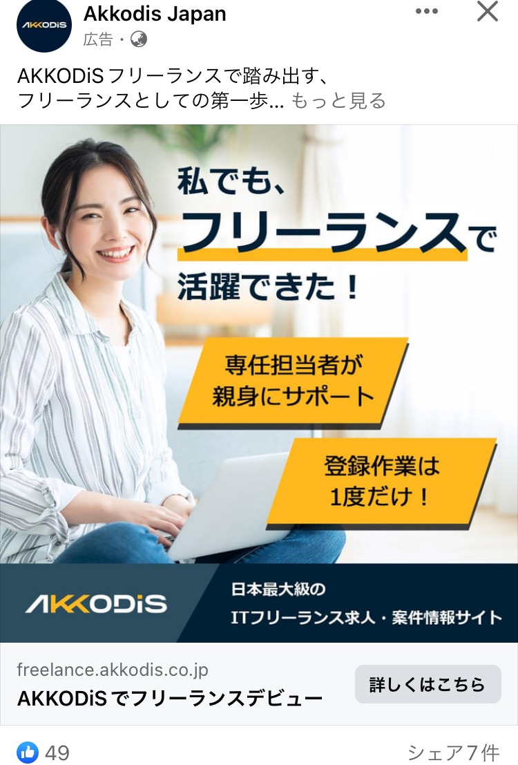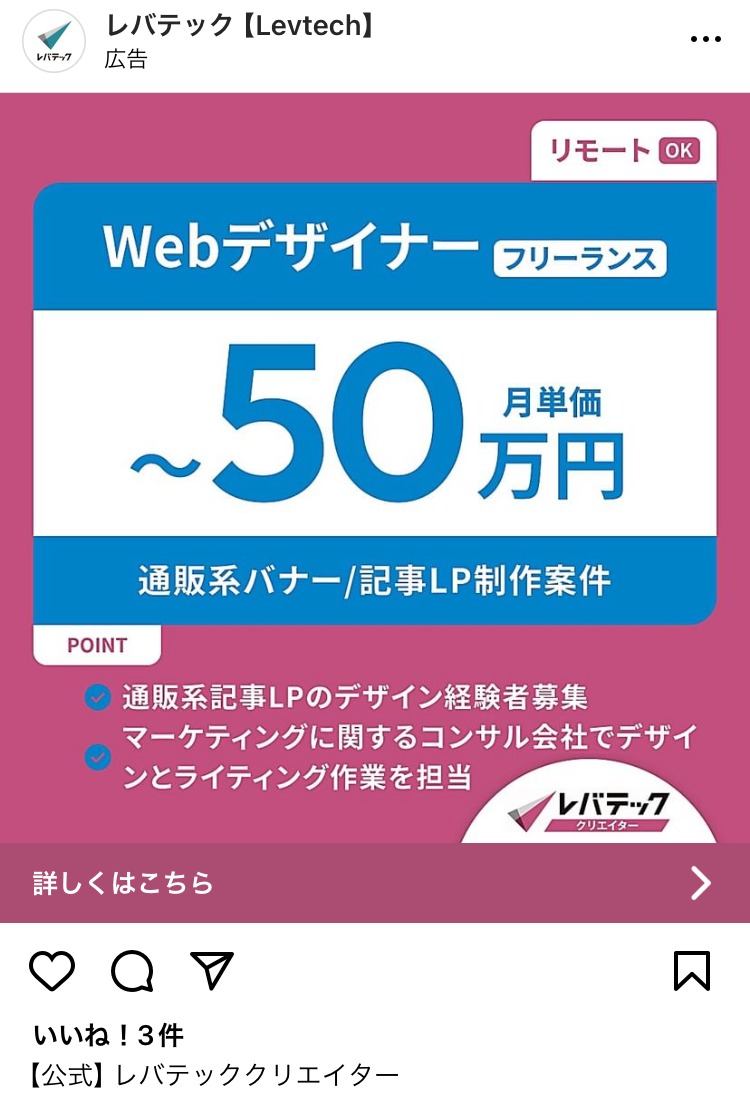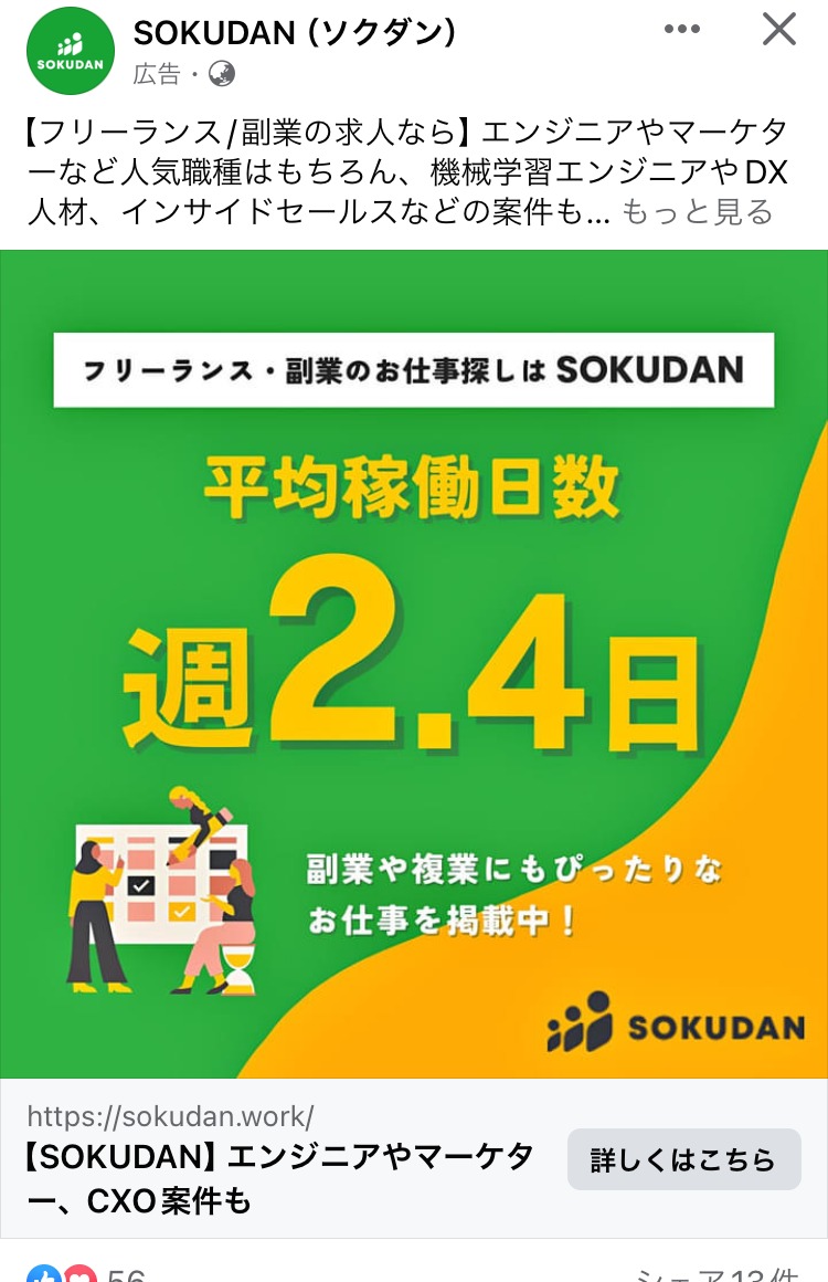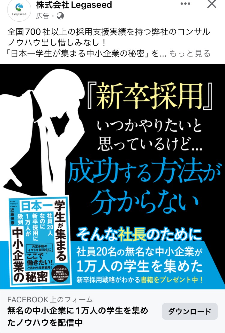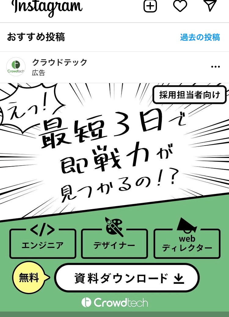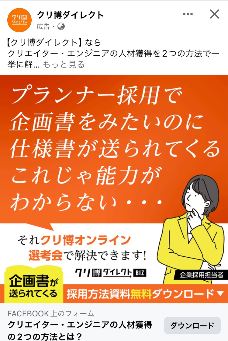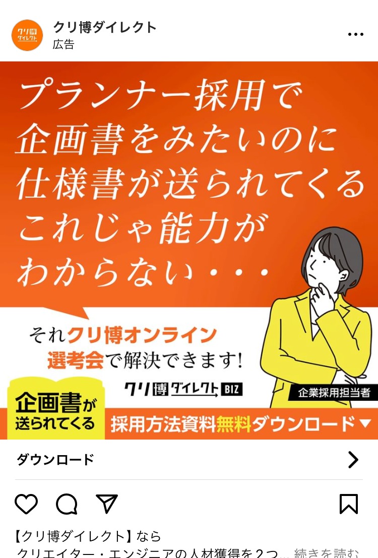 SecondTone inc. 白 グレー 黒 求人・採用 女性 イラスト・図解 この広告主のライブラリをみる クラウドテック みどり 白 黒 求人・採用 起業家・経営者 イラスト・図解 この広告主のライブラリをみる 株式会社 P-UP neo あか 求人・採用 BtoB・事業者向け 起業家・経営者 テキストメイン この広告主のライブラリをみる 株式会社 Legaseed 黒 求人・採用 BtoB・事業者向け 起業家・経営者 テキストメイン この広告主のライブラリをみる Akkodis Japan あお 求人・採用 フリーランス 人物写真(モデル) この広告主のライブラリをみる 採用コンセプト作成代行 むらさき 求人・採用 PR・ブランディング 起業家・経営者 イラスト・図解 この広告主のライブラリをみる クリ博ダイレクト オレンジ・きいろ 求人・採用 起業家・経営者 イラスト・図解 テキストメイン この広告主のライブラリをみる マイスピー あお 求人・採用 男性 テキストメイン この広告主のライブラリをみる 地域特化型求人メディア|パートナー募集 あか 求人・採用 BtoB・事業者向け 起業家・経営者 人物写真(本人) この広告主のライブラリをみる SOKUDAN(ソクダン) オレンジ・きいろ 求人・採用 副業・初心者向けビジネス フリーランス 初心者 イラスト・図解 この広告主のライブラリをみる レバテック【Levtech】 あお 求人・採用 デザイナー・クリエイター フリーランス テキストメイン この広告主のライブラリをみる クリ博ダイレクト オレンジ・きいろ 求人・採用 BtoB・事業者向け 起業家・経営者 テキストメイン この広告主のライブラリをみる ビズリーチ(採用ご担当者様向け) ベージュ・ゴールド 求人・採用 BtoB・事業者向け 起業家・経営者 テキストメイン この広告主のライブラリをみる zinzai_kikaku_web あお 求人・採用 起業家・経営者 人物写真(モデル) この広告主のライブラリをみる クリ博ダイレクト オレンジ・きいろ 求人・採用 BtoB・事業者向け 起業家・経営者 イラスト・図解 テキストメイン この広告主のライブラリをみる SOKUDAN (ソクダン) みどり 求人・採用 副業・初心者向けビジネス フリーランス 初心者 イラスト・図解 この広告主のライブラリをみる 投稿のページ送り 1 2 3 次へ
