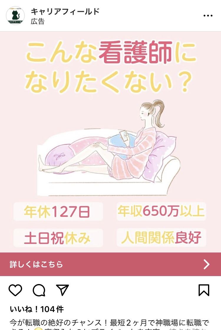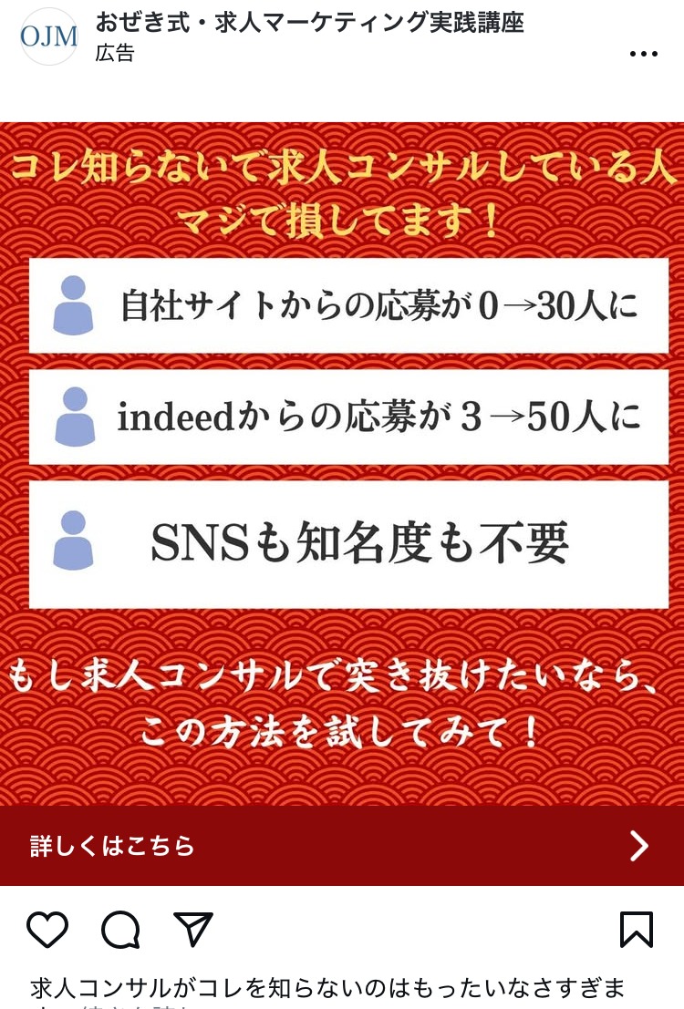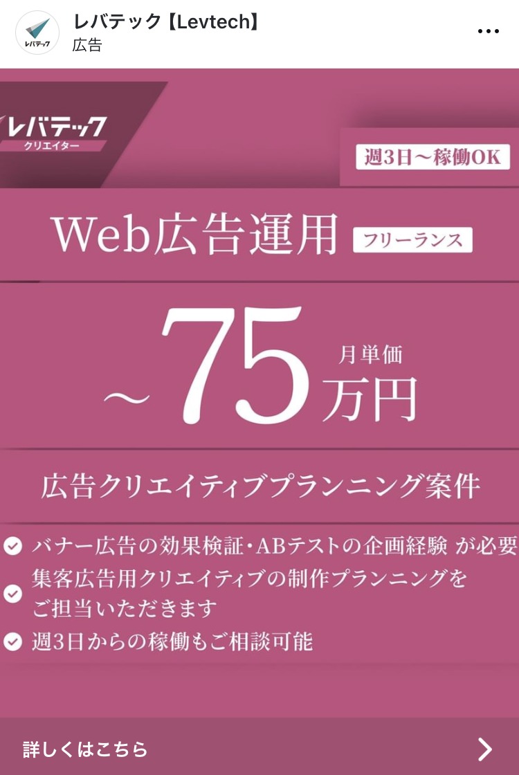 lotsful ベージュ・ゴールド 求人・採用 マーケティング 起業家・経営者 イラスト・図解 この広告主のライブラリをみる マーケティングプロパートナーズ あお 求人・採用 マーケティング フリーランス 人物写真(モデル) この広告主のライブラリをみる ジョブセイバー みどり 求人・採用 女性 初心者 人物写真(モデル) この広告主のライブラリをみる キャリアフィールド ピンク 求人・採用 女性 イラスト・図解 この広告主のライブラリをみる joblistingmaster あお 求人・採用 起業家・経営者 人物写真(モデル) この広告主のライブラリをみる おぜき式・求人マーケティング実践講座 あか 求人・採用 スクール・講座・コミュニティ 起業家・経営者 フリーランス テキストメイン この広告主のライブラリをみる mamoria0423 あお 求人・採用 初心者 人物写真(モデル) この広告主のライブラリをみる レバテック【Levtech】 ピンク 求人・採用 広告運用・広告集客 フリーランス テキストメイン この広告主のライブラリをみる 投稿のページ送り 前へ 1 2 3 次へ
