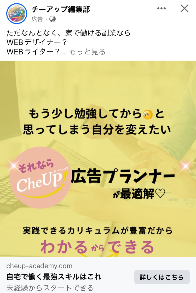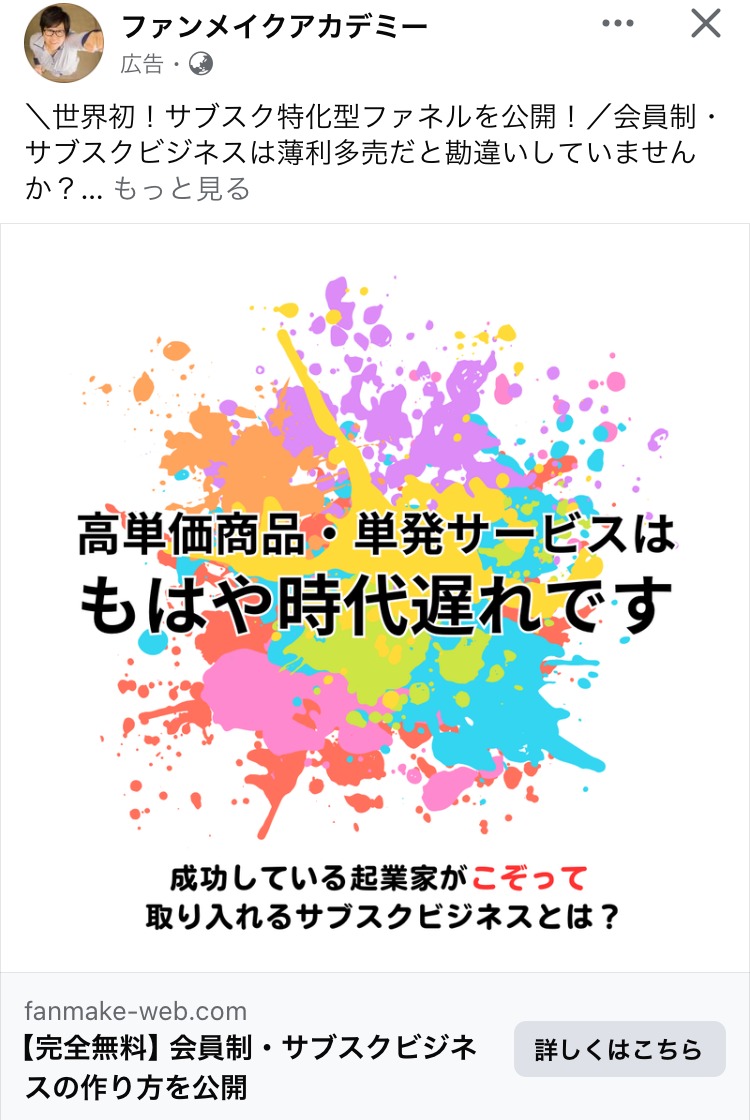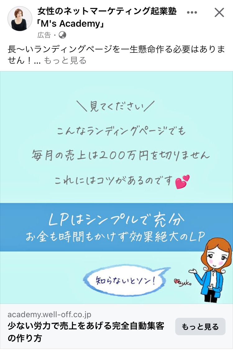 徳武 輝彦 ピンク マーケティング スクール・講座・コミュニティ 起業家・経営者 イラスト・図解 この広告主のライブラリをみる Utage完全攻略講座 むらさき スクール・講座・コミュニティ SNS・LINE集客 起業家・経営者 初心者 イラスト・図解 この広告主のライブラリをみる ムビスタ むらさき 副業・初心者向けビジネス スクール・講座・コミュニティ 初心者 人物写真(モデル) この広告主のライブラリをみる 創業手帳 woman ピンク 副業・初心者向けビジネス スクール・講座・コミュニティ 起業家・経営者 女性 人物写真(本人) この広告主のライブラリをみる プロダクトローンチの専門家 田中祐一 白 マーケティング スクール・講座・コミュニティ 起業家・経営者 フリーランス 人物写真(モデル) テキストメイン この広告主のライブラリをみる 芝先 平 ベージュ・ゴールド スクール・講座・コミュニティ SNS・LINE集客 起業家・経営者 フリーランス 人物写真(本人) テキストメイン この広告主のライブラリをみる SAP あお BtoB・事業者向け スクール・講座・コミュニティ 起業家・経営者 人物写真(モデル) この広告主のライブラリをみる 女性のネットマーケティング起業塾「M’s Academy」 みどり マーケティング スクール・講座・コミュニティ 起業家・経営者 女性 イラスト・図解 この広告主のライブラリをみる ゆるヴィーガンChie 白 スクール・講座・コミュニティ 女性 テキストメイン この広告主のライブラリをみる 徳武 輝彦 白 スクール・講座・コミュニティ SNS・LINE集客 起業家・経営者 テキストメイン この広告主のライブラリをみる Kindle出版プロデューサー起業 オレンジ・きいろ デザイナー・クリエイター スクール・講座・コミュニティ 起業家・経営者 フリーランス テキストメイン この広告主のライブラリをみる 日本デザインスクール みどり デザイナー・クリエイター スクール・講座・コミュニティ 初心者 テキストメイン この広告主のライブラリをみる ファンメイクアカデミー むらさき マーケティング スクール・講座・コミュニティ 起業家・経営者 テキストメイン この広告主のライブラリをみる アイレップ (IREP Co., Ltd.) あお マーケティング スクール・講座・コミュニティ フリーランス 人物写真(モデル) この広告主のライブラリをみる お金を守る勉強会 オレンジ・きいろ マネー・金融・保険 スクール・講座・コミュニティ 起業家・経営者 初心者 テキストメイン この広告主のライブラリをみる チーアップ編集部 オレンジ・きいろ 広告運用・広告集客 スクール・講座・コミュニティ 女性 初心者 テキストメイン この広告主のライブラリをみる 投稿のページ送り 前へ 1 … 12 13 14 … 42 次へ