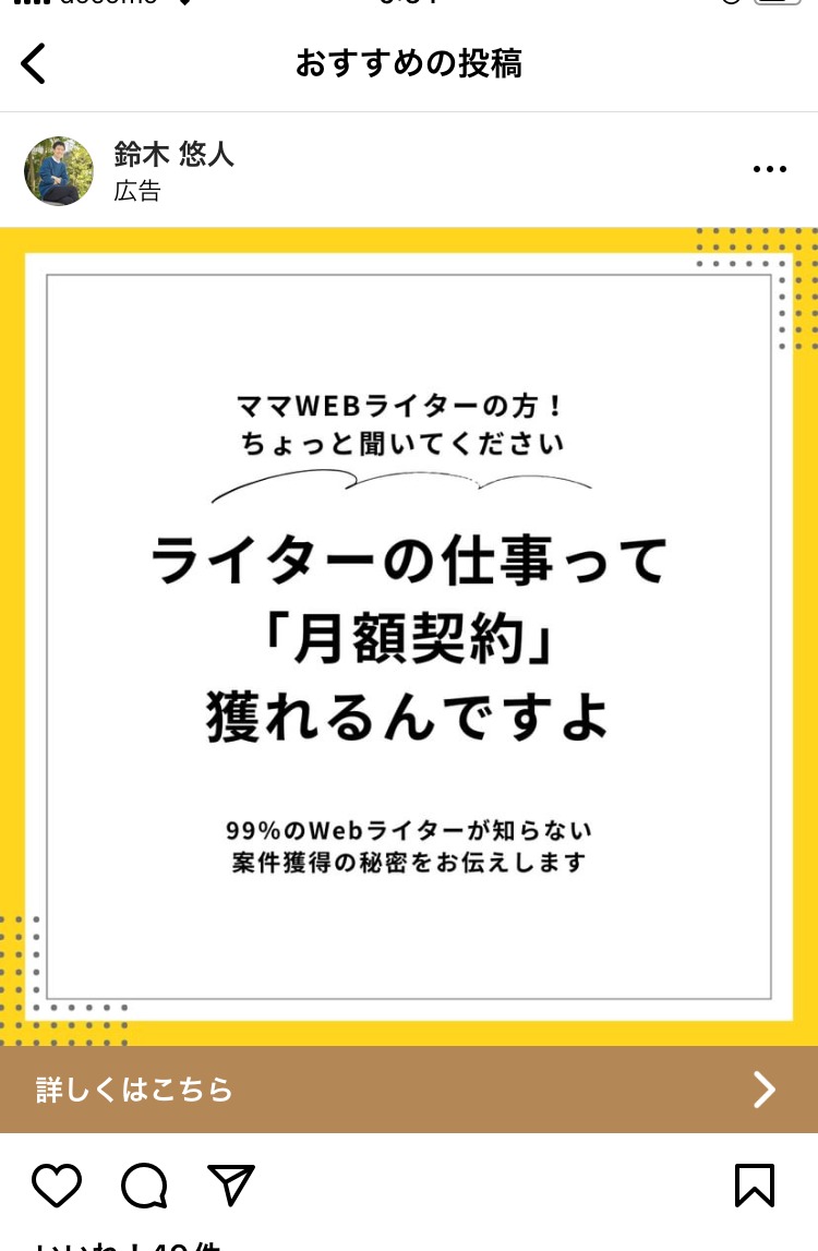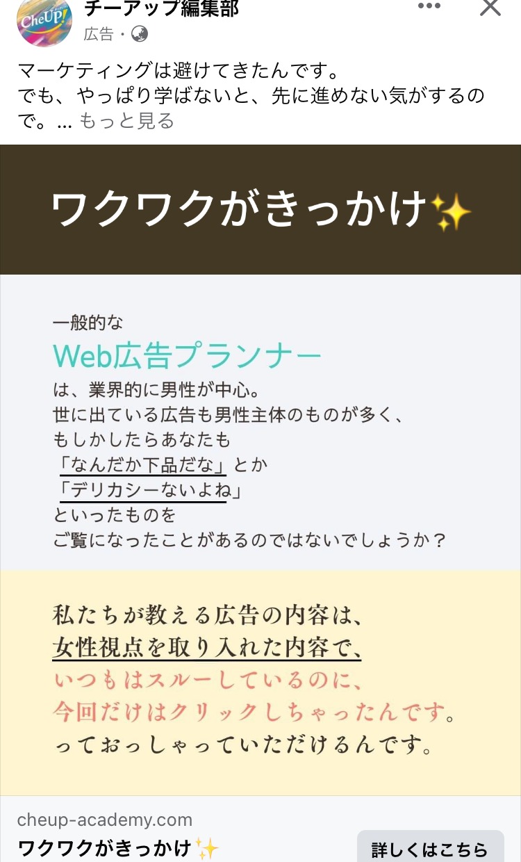 ミリオンデザインスクール ピンク デザイナー・クリエイター スクール・講座・コミュニティ フリーランス 女性 イラスト・図解 この広告主のライブラリをみる One ウェビナー億超え集客 あお 広告運用・広告集客 スクール・講座・コミュニティ フリーランス 起業家・経営者 テキストメイン この広告主のライブラリをみる チーアップ編集部 ベージュ・ゴールド 広告運用・広告集客 スクール・講座・コミュニティ 女性 初心者 テキストメイン この広告主のライブラリをみる DMM オンラインサロン ピンク コーチング・心理学 スクール・講座・コミュニティ 起業家・経営者 女性 人物写真(モデル) この広告主のライブラリをみる 鈴木 悠人 オレンジ・きいろ ライティング・コピーライティング スクール・講座・コミュニティ ママ 初心者 テキストメイン この広告主のライブラリをみる はなしまあのん ピンク スピリチュアル・占い スクール・講座・コミュニティ 女性 人物写真(モデル) この広告主のライブラリをみる 女神塾 あお 恋愛・婚活・パートナーシップ スクール・講座・コミュニティ 女性 人物写真(モデル) この広告主のライブラリをみる homewine.jp ベージュ・ゴールド スクール・講座・コミュニティ 女性 人物写真(モデル) この広告主のライブラリをみる 心とカラダの学校 オレンジ・きいろ 恋愛・婚活・パートナーシップ スクール・講座・コミュニティ 女性 イラスト・図解 この広告主のライブラリをみる tomomi_ride ピンク 広告運用・広告集客 スクール・講座・コミュニティ フリーランス 女性 テキストメイン この広告主のライブラリをみる bisisei.tsukuitomomi ピンク 健康・整体・ウェルネス スクール・講座・コミュニティ 女性 人物写真(本人) この広告主のライブラリをみる ishii_takashi556 むらさき スピリチュアル・占い スクール・講座・コミュニティ 起業家・経営者 初心者 テキストメイン この広告主のライブラリをみる スピリチュアルライター養成講座 あお スピリチュアル・占い スクール・講座・コミュニティ 女性 初心者 人物写真(モデル) この広告主のライブラリをみる The New Age むらさき マーケティング スクール・講座・コミュニティ 起業家・経営者 女性 テキストメイン この広告主のライブラリをみる magna_method 白 子育て・教育 スクール・講座・コミュニティ ママ イラスト・図解 この広告主のライブラリをみる atsushihonjo ピンク スピリチュアル・占い スクール・講座・コミュニティ 初心者 テキストメイン この広告主のライブラリをみる 投稿のページ送り 前へ 1 … 13 14 15 … 42 次へ