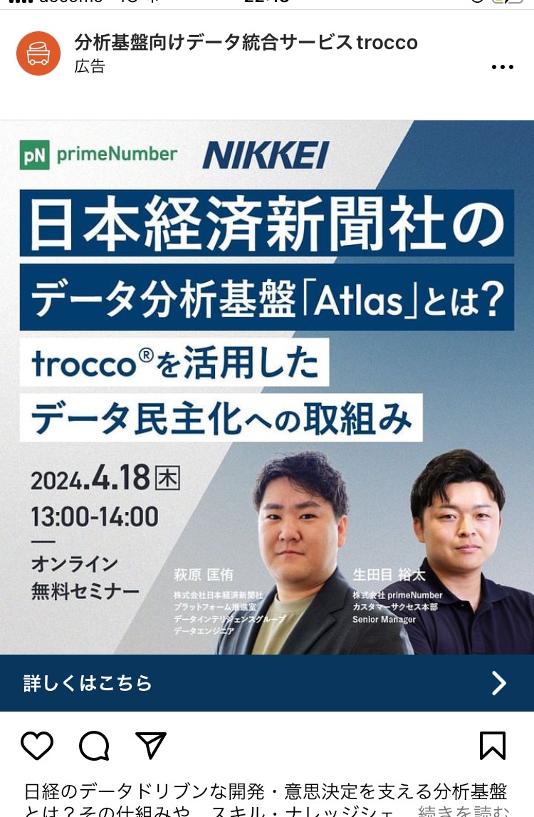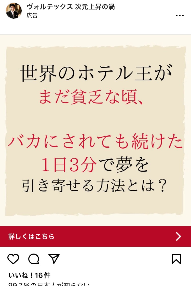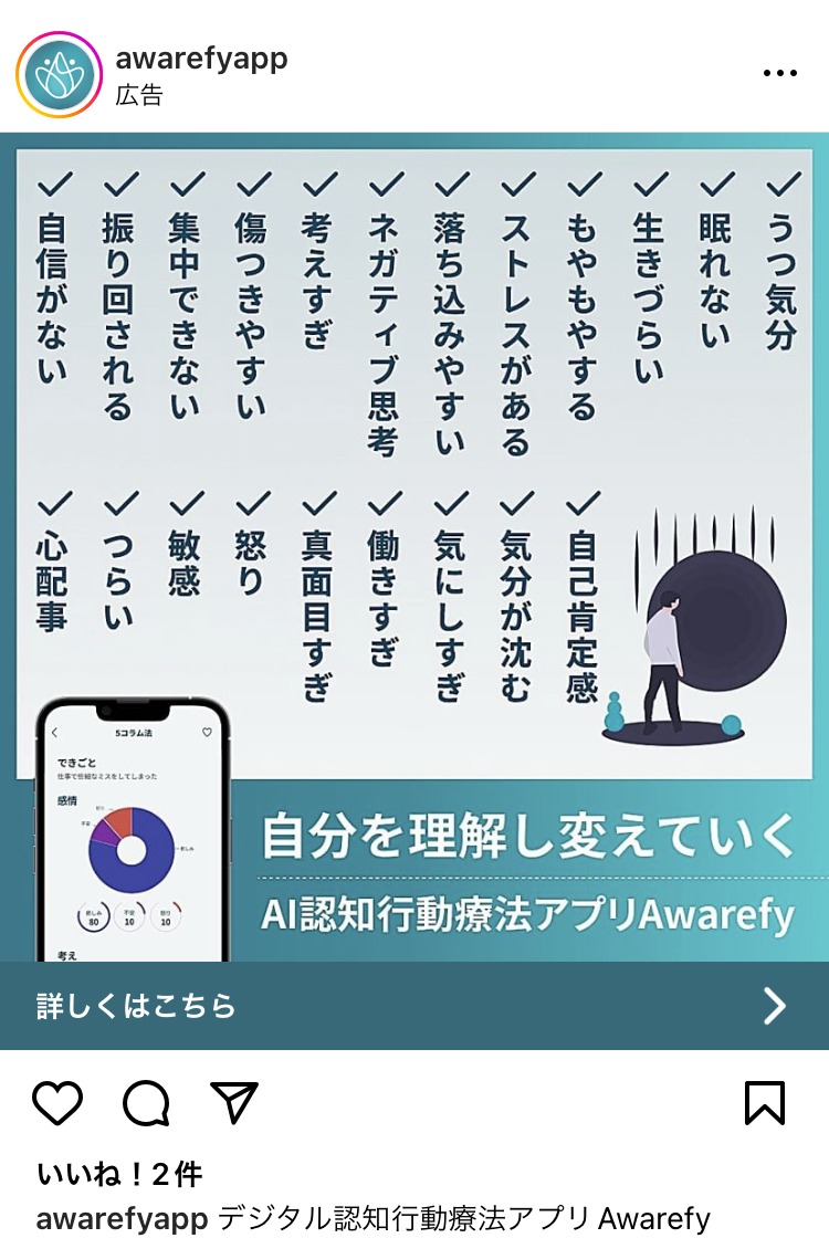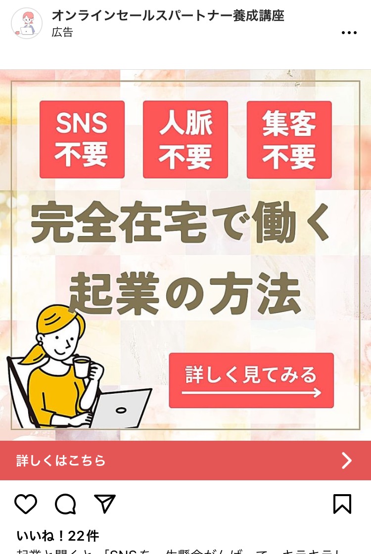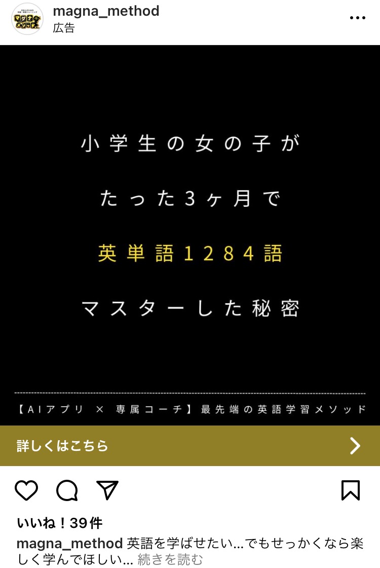 thepassiontest.jp むらさき コーチング・心理学 スクール・講座・コミュニティ 女性 初心者 人物写真(本人) この広告主のライブラリをみる マインドフルネス速読 オレンジ・きいろ コーチング・心理学 スクール・講座・コミュニティ 初心者 イラスト・図解 この広告主のライブラリをみる 分析基盤向けデータ統合サービス trocco あお BtoB・事業者向け スクール・講座・コミュニティ 起業家・経営者 人物写真(本人) テキストメイン この広告主のライブラリをみる haradamethod グレー コーチング・心理学 スクール・講座・コミュニティ 起業家・経営者 初心者 テキストメイン この広告主のライブラリをみる 若返りの学校 あお 健康・整体・ウェルネス スクール・講座・コミュニティ 男性 人物写真(モデル) テキストメイン この広告主のライブラリをみる アイレップ (IREP Co., Ltd.) ピンク 副業・初心者向けビジネス スクール・講座・コミュニティ フリーランス イラスト・図解 この広告主のライブラリをみる magna_method 黒 子育て・教育 スクール・講座・コミュニティ 女性 ママ テキストメイン この広告主のライブラリをみる オンラインセールスパートナー養成講座 ピンク 副業・初心者向けビジネス スクール・講座・コミュニティ 女性 初心者 イラスト・図解 この広告主のライブラリをみる awarefyapp あお コーチング・心理学 スクール・講座・コミュニティ 女性 初心者 イラスト・図解 テキストメイン この広告主のライブラリをみる マイスピー あお スクール・講座・コミュニティ SNS・LINE集客 フリーランス 男性 テキストメイン この広告主のライブラリをみる ヴォルテックス 次元上昇の渦 ベージュ・ゴールド スピリチュアル・占い スクール・講座・コミュニティ 初心者 テキストメイン この広告主のライブラリをみる マーケティングスクール MERC Education オレンジ・きいろ 広告運用・広告集客 スクール・講座・コミュニティ フリーランス 初心者 人物写真(モデル) テキストメイン この広告主のライブラリをみる DX学校 むらさき BtoB・事業者向け スクール・講座・コミュニティ 起業家・経営者 人物写真(モデル) この広告主のライブラリをみる homewine.jp あお スクール・講座・コミュニティ 女性 テキストメイン この広告主のライブラリをみる アイレップ (IREP Co., Ltd.) あお BtoB・事業者向け スクール・講座・コミュニティ フリーランス 人物写真(モデル) この広告主のライブラリをみる マーケティングスクール MERC Education オレンジ・きいろ 広告運用・広告集客 スクール・講座・コミュニティ フリーランス 初心者 人物写真(モデル) テキストメイン この広告主のライブラリをみる 投稿のページ送り 前へ 1 … 16 17 18 … 42 次へ