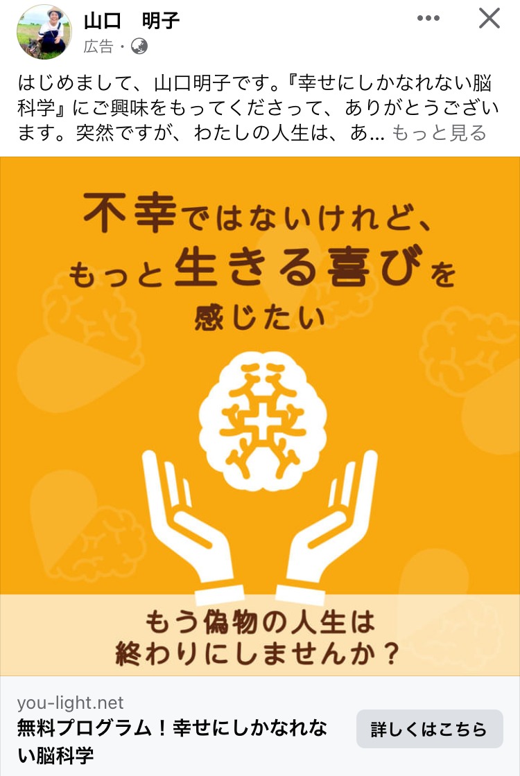 山口 明子 オレンジ・きいろ コーチング・心理学 スクール・講座・コミュニティ 女性 イラスト・図解 この広告主のライブラリをみる 長沢伶一【神に仕事をさせる9つの空間】 グレー スピリチュアル・占い スクール・講座・コミュニティ 起業家・経営者 イラスト・図解 この広告主のライブラリをみる セールスデザイン講座 ピンク デザイナー・クリエイター スクール・講座・コミュニティ フリーランス 初心者 テキストメイン この広告主のライブラリをみる Webデザイナー情報局 あお デザイナー・クリエイター スクール・講座・コミュニティ 初心者 イラスト・図解 この広告主のライブラリをみる IMK Books【アーユルヴェーダ】 白 健康・整体・ウェルネス スクール・講座・コミュニティ 女性 初心者 テキストメイン この広告主のライブラリをみる ヴォルテックス 次元上昇の渦 あか スピリチュアル・占い スクール・講座・コミュニティ 起業家・経営者 初心者 イラスト・図解 テキストメイン この広告主のライブラリをみる CoCo Channel ピンク デザイナー・クリエイター スクール・講座・コミュニティ フリーランス 女性 人物写真(モデル) テキストメイン この広告主のライブラリをみる 永世ゆたか ベージュ・ゴールド スピリチュアル・占い スクール・講座・コミュニティ 初心者 テキストメイン この広告主のライブラリをみる ViaVideo あお 副業・初心者向けビジネス スクール・講座・コミュニティ 初心者 イラスト・図解 この広告主のライブラリをみる 愛されクリエーターアカデミー 白 デザイナー・クリエイター スクール・講座・コミュニティ フリーランス 初心者 人物写真(本人) テキストメイン この広告主のライブラリをみる 松山隼 白 スクール・講座・コミュニティ SNS・LINE集客 起業家・経営者 フリーランス テキストメイン この広告主のライブラリをみる UPstart みどり デザイナー・クリエイター スクール・講座・コミュニティ フリーランス 初心者 テキストメイン この広告主のライブラリをみる 株式会社 shiraha グレー デザイナー・クリエイター スクール・講座・コミュニティ 初心者 イラスト・図解 テキストメイン この広告主のライブラリをみる 早川@キャッチコピーの魔術 むらさき ライティング・コピーライティング スクール・講座・コミュニティ 起業家・経営者 フリーランス テキストメイン この広告主のライブラリをみる プロダクトローンチの専門家 田中祐一 ベージュ・ゴールド マーケティング スクール・講座・コミュニティ 起業家・経営者 フリーランス テキストメイン この広告主のライブラリをみる 講座事業プロデュース あお BtoB・事業者向け スクール・講座・コミュニティ 起業家・経営者 テキストメイン この広告主のライブラリをみる 投稿のページ送り 前へ 1 … 7 8 9 … 42 次へ