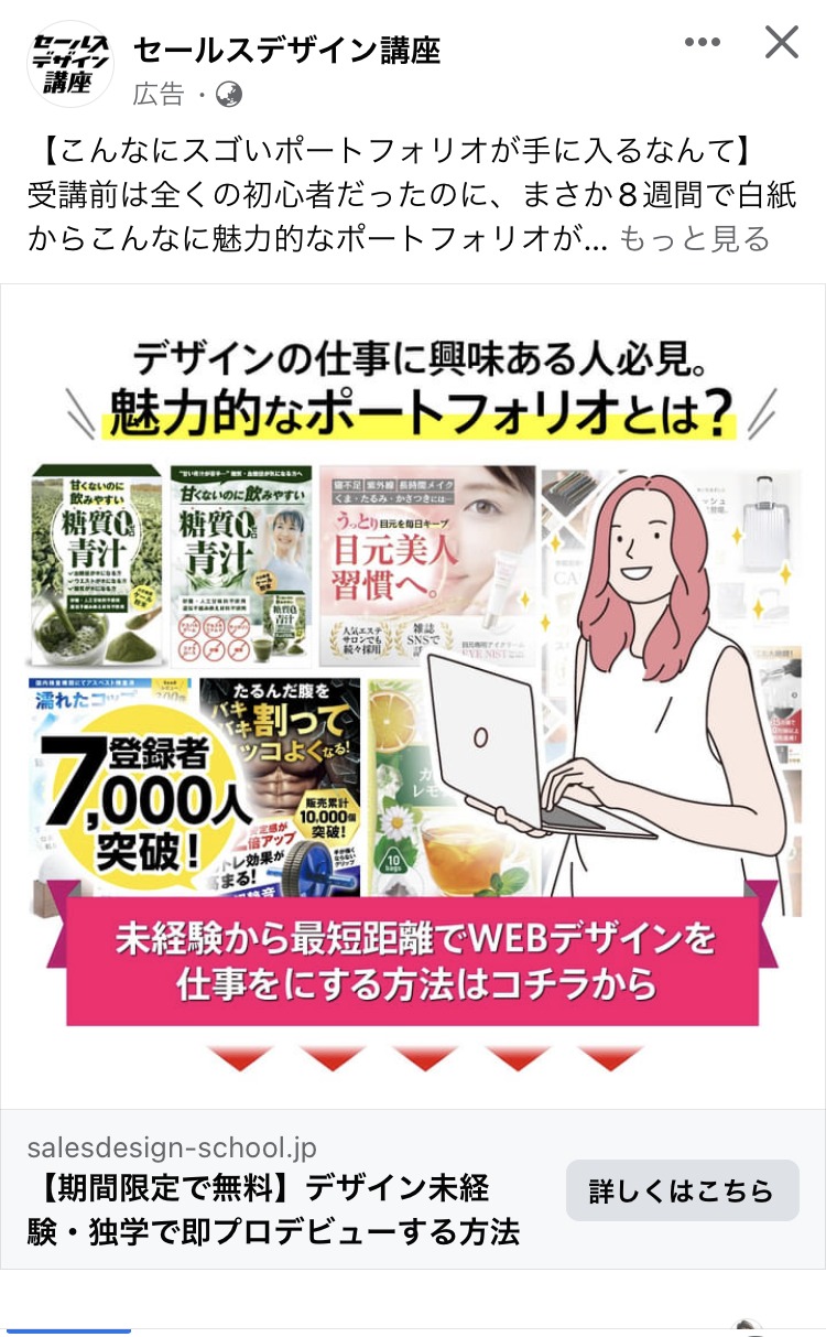 Air ビジネスツールズ あお BtoB・事業者向け 起業家・経営者 人物写真(モデル) この広告主のライブラリをみる hatalabo1business オレンジ・きいろ BtoB・事業者向け スクール・講座・コミュニティ 起業家・経営者 初心者 人物写真(モデル) この広告主のライブラリをみる miinjp.official ピンク エステ・脱毛・クリニック 女性 人物写真(モデル) この広告主のライブラリをみる オキタリュウイチ人生が変わる第三の選択 あお PR・ブランディング マーケティング 起業家・経営者 人物写真(モデル) この広告主のライブラリをみる 筏井恵太 オレンジ・きいろ あお 白 スクール・講座・コミュニティ SNS・LINE集客 起業家・経営者 女性 人物写真(モデル) テキストメイン この広告主のライブラリをみる スキルアス あか オレンジ・きいろ みどり 白 デザイナー・クリエイター スクール・講座・コミュニティ フリーランス 初心者 人物写真(モデル) テキストメイン この広告主のライブラリをみる スキルアス むらさき ピンク 白 デザイナー・クリエイター スクール・講座・コミュニティ フリーランス 女性 人物写真(モデル) この広告主のライブラリをみる スキルアス 白 黒 ベージュ・ゴールド デザイナー・クリエイター スクール・講座・コミュニティ 女性 初心者 人物写真(モデル) この広告主のライブラリをみる 大和民族大學校 白 黒 ベージュ・ゴールド マーケティング スクール・講座・コミュニティ 起業家・経営者 人物写真(モデル) この広告主のライブラリをみる Season_in 白 グレー 黒 副業・初心者向けビジネス スクール・講座・コミュニティ 起業家・経営者 初心者 人物写真(モデル) この広告主のライブラリをみる orecon.co 白 黒 ベージュ・ゴールド ライティング・コピーライティング マーケティング 起業家・経営者 人物写真(モデル) テキストメイン この広告主のライブラリをみる 大和民族大學校 あか 白 黒 マーケティング 起業家・経営者 人物写真(モデル) テキストメイン この広告主のライブラリをみる 保志 吏衣子 みどり 白 ベージュ・ゴールド スクール・講座・コミュニティ 女性 人物写真(モデル) この広告主のライブラリをみる 花嫁プレスクール ピンク 白 黒 恋愛・婚活・パートナーシップ スクール・講座・コミュニティ 女性 人物写真(モデル) ビフォーアフター・比較 この広告主のライブラリをみる ライフウェルネス六命健康法 石川善光 白 黒 ベージュ・ゴールド 健康・整体・ウェルネス 初心者 人物写真(モデル) この広告主のライブラリをみる <在宅×フリーランス>ワークスタイルメディア あか 白 ベージュ・ゴールド スクール・講座・コミュニティ SNS・LINE集客 起業家・経営者 フリーランス 人物写真(モデル) この広告主のライブラリをみる 投稿のページ送り 1 2 … 21 次へ