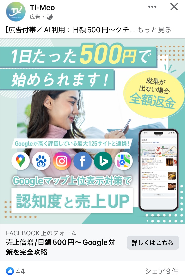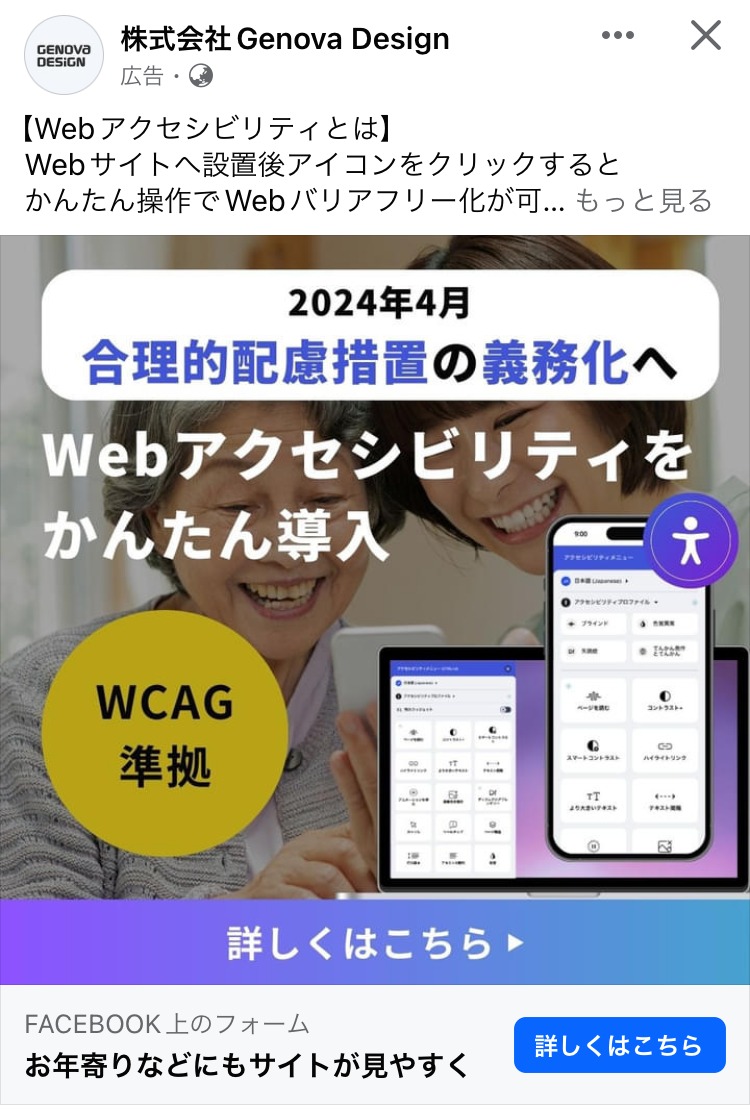 田中祐一 白 グレー ベージュ・ゴールド マーケティング スクール・講座・コミュニティ 起業家・経営者 人物写真(モデル) この広告主のライブラリをみる メディアアカデミー あお 白 スクール・講座・コミュニティ SNS・LINE集客 起業家・経営者 フリーランス 人物写真(モデル) テキストメイン この広告主のライブラリをみる マネカツ ピンク マネー・金融 スクール・講座・コミュニティ 女性 初心者 人物写真(モデル) この広告主のライブラリをみる マルコ株式会社(広告用アカウント) ピンク ファッション・アパレル コスメ・美容サービス 女性 人物写真(モデル) この広告主のライブラリをみる helio_hoshi オレンジ・きいろ スピリチュアル・占い スクール・講座・コミュニティ 女性 初心者 人物写真(モデル) この広告主のライブラリをみる 鳥海流四柱推命 オレンジ・きいろ スピリチュアル・占い スクール・講座・コミュニティ 女性 初心者 人物写真(モデル) この広告主のライブラリをみる TUNAG あお PR・ブランディング BtoB・事業者向け 起業家・経営者 人物写真(モデル) この広告主のライブラリをみる Yumicorebody あお 健康・整体・ウェルネス スクール・講座・コミュニティ 女性 ママ 人物写真(モデル) この広告主のライブラリをみる Ayayoga むらさき 健康・整体・ウェルネス 女性 人物写真(モデル) この広告主のライブラリをみる 一般社団法人 日本アート教育振興会 ピンク 子育て・教育 スクール・講座・コミュニティ 女性 ママ 人物写真(モデル) この広告主のライブラリをみる 西三河シェア No.1 住まいのことならフジケン あお 住宅・不動産 女性 人物写真(モデル) この広告主のライブラリをみる The Trade Desk あお マーケティング 広告運用・広告集客 起業家・経営者 人物写真(モデル) この広告主のライブラリをみる TI-Meo あお マーケティング 広告運用・広告集客 起業家・経営者 人物写真(モデル) この広告主のライブラリをみる Disney+ Japan みどり PR・ブランディング 女性 男性 人物写真(モデル) この広告主のライブラリをみる 株式会社 Genova Design あお BtoB・事業者向け 起業家・経営者 人物写真(モデル) この広告主のライブラリをみる 歯科代行.com あお BtoB・事業者向け スクール・講座・コミュニティ 起業家・経営者 人物写真(モデル) テキストメイン この広告主のライブラリをみる 投稿のページ送り 前へ 1 2 3 … 21 次へ