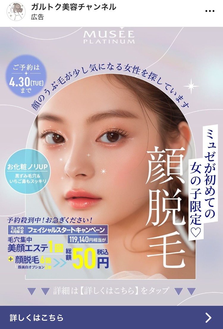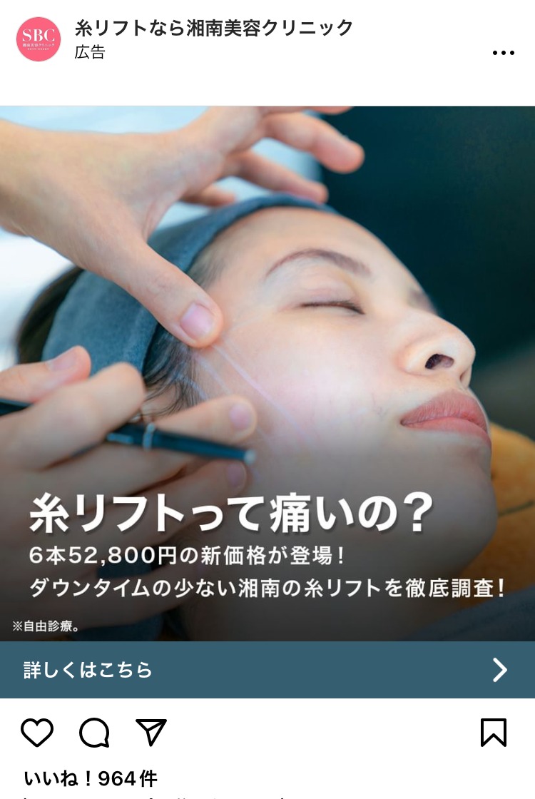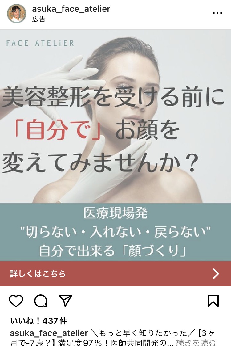 pesca.beauty ピンク コスメ・美容サービス 女性 人物写真(モデル) ビフォーアフター・比較 この広告主のライブラリをみる 糸リフトなら湘南美容クリニック あお コスメ・美容サービス 女性 人物写真(モデル) この広告主のライブラリをみる thetradedesk みどり マーケティング 広告運用・広告集客 起業家・経営者 人物写真(モデル) この広告主のライブラリをみる 心のヨガ専門校ーハート オブ サウンド あお 健康・整体・ウェルネス スクール・講座・コミュニティ 女性 人物写真(モデル) この広告主のライブラリをみる ガルトク美容チャンネル ピンク コスメ・美容サービス 女性 人物写真(モデル) この広告主のライブラリをみる SHIFT AI オレンジ・きいろ 副業・初心者向けビジネス スクール・講座・コミュニティ 起業家・経営者 初心者 人物写真(モデル) この広告主のライブラリをみる tokyocameraclub あお PR・ブランディング SNS・LINE集客 起業家・経営者 人物写真(モデル) テキストメイン この広告主のライブラリをみる zinzai_kikaku_web あお 求人・採用 起業家・経営者 人物写真(モデル) この広告主のライブラリをみる 若返りの学校 あお 健康・整体・ウェルネス スクール・講座・コミュニティ 男性 人物写真(モデル) テキストメイン この広告主のライブラリをみる metaforbusiness あお マーケティング 広告運用・広告集客 起業家・経営者 人物写真(モデル) この広告主のライブラリをみる dpearl_official 白 健康・整体・ウェルネス コスメ・美容サービス 女性 人物写真(モデル) この広告主のライブラリをみる asuka_face_atelier ベージュ・ゴールド コスメ・美容サービス 女性 人物写真(モデル) この広告主のライブラリをみる vitabrid_japan ピンク コスメ・美容サービス 女性 人物写真(モデル) この広告主のライブラリをみる fitdish_official ベージュ・ゴールド 健康・整体・ウェルネス 女性 ママ 人物写真(モデル) この広告主のライブラリをみる Mamaのきもち ピンク コスメ・美容サービス 子育て・教育 女性 ママ 人物写真(モデル) この広告主のライブラリをみる beauty.switch_official ベージュ・ゴールド 健康・整体・ウェルネス 女性 人物写真(モデル) この広告主のライブラリをみる 投稿のページ送り 前へ 1 … 7 8 9 … 21 次へ
