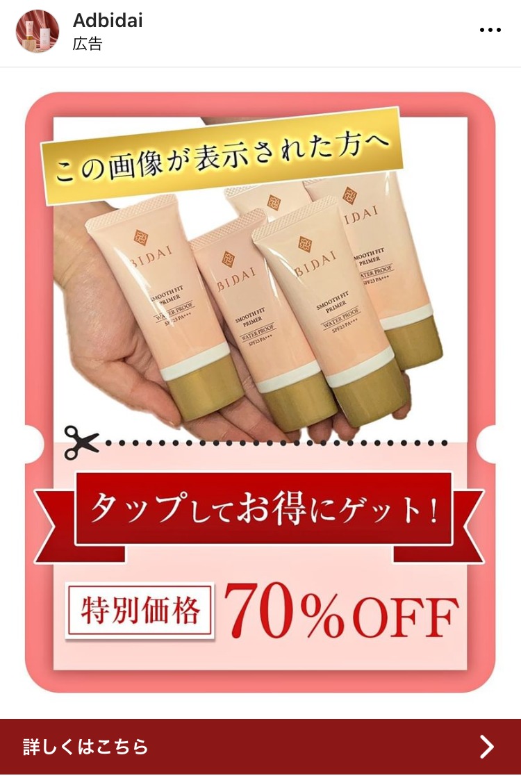 Cotton Beauty11 あか 健康・整体・ウェルネス 子育て・教育 ママ テキストメイン この広告主のライブラリをみる Adbidai ピンク コスメ・美容サービス 女性 テキストメイン この広告主のライブラリをみる narimiya.sekaikan 黒 コーチング・心理学 スクール・講座・コミュニティ 起業家・経営者 初心者 テキストメイン この広告主のライブラリをみる bruceclay_japan あお 広告運用・広告集客 起業家・経営者 人物写真(モデル) この広告主のライブラリをみる Buzz Cosme ピンク コスメ・美容サービス 女性 人物写真(モデル) この広告主のライブラリをみる pesca.beauty ピンク コスメ・美容サービス 女性 人物写真(モデル) ビフォーアフター・比較 この広告主のライブラリをみる 全く新しい速読法「瞬読」 ベージュ・ゴールド スクール・講座・コミュニティ 初心者 テキストメイン この広告主のライブラリをみる 中小企業サポーター エヌエヌ生命 オレンジ・きいろ マネー・金融・保険 BtoB・事業者向け 起業家・経営者 テキストメイン この広告主のライブラリをみる 糸リフトなら湘南美容クリニック あお コスメ・美容サービス 女性 人物写真(モデル) この広告主のライブラリをみる masami.aono みどり コーチング・心理学 スクール・講座・コミュニティ 起業家・経営者 女性 人物写真(本人) テキストメイン この広告主のライブラリをみる slim_first_net あお コスメ・美容サービス 女性 テキストメイン この広告主のライブラリをみる 株式会社キャスター オレンジ・きいろ BtoB・事業者向け 起業家・経営者 イラスト・図解 テキストメイン この広告主のライブラリをみる vc_publicist あお BtoB・事業者向け 広告運用・広告集客 起業家・経営者 テキストメイン この広告主のライブラリをみる thetradedesk みどり マーケティング 広告運用・広告集客 起業家・経営者 人物写真(モデル) この広告主のライブラリをみる エキスパート chatgpt の活用法 みどり スクール・講座・コミュニティ 初心者 テキストメイン この広告主のライブラリをみる ソーシャルマーケティングラボ むらさき マーケティング SNS・LINE集客 起業家・経営者 フリーランス テキストメイン この広告主のライブラリをみる « 前へ 1 … 33 34 35 36 37 … 76 次へ »
