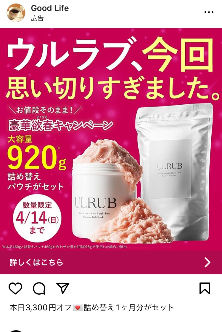 L-noa あお コスメ・美容サービス 女性 ママ イラスト・図解 ビフォーアフター・比較 この広告主のライブラリをみる midori_tangle みどり 健康・整体・ウェルネス スクール・講座・コミュニティ 女性 初心者 テキストメイン この広告主のライブラリをみる M3 DigiKar(エムスリーデジカル) あお BtoB・事業者向け 起業家・経営者 テキストメイン この広告主のライブラリをみる クリ博ダイレクト オレンジ・きいろ 求人・採用 BtoB・事業者向け 起業家・経営者 テキストメイン この広告主のライブラリをみる Horio 白 マネー・金融・保険 初心者 イラスト・図解 この広告主のライブラリをみる 心のヨガ専門校ーハート オブ サウンド あお 健康・整体・ウェルネス スクール・講座・コミュニティ 女性 人物写真(モデル) この広告主のライブラリをみる mimc_natural ピンク コスメ・美容サービス 女性 テキストメイン この広告主のライブラリをみる 夢のマイホーム裏技.com みどり 不動産・住まい 初心者 テキストメイン この広告主のライブラリをみる ljffew2 ピンク マネー・金融・保険 スクール・講座・コミュニティ 初心者 イラスト・図解 この広告主のライブラリをみる mamikokuga ベージュ・ゴールド スピリチュアル・占い スクール・講座・コミュニティ 女性 初心者 イラスト・図解 この広告主のライブラリをみる 事前告知 グレー コスメ・美容サービス 女性 テキストメイン この広告主のライブラリをみる Good Life ピンク コスメ・美容サービス 女性 テキストメイン この広告主のライブラリをみる ガルトク美容チャンネル ピンク コスメ・美容サービス 女性 人物写真(モデル) この広告主のライブラリをみる yoshikei_higashiaichi_official オレンジ・きいろ 子育て・教育 女性 ママ イラスト・図解 この広告主のライブラリをみる 2刀流インスタブランディング起業塾セミ… むらさき スクール・講座・コミュニティ SNS・LINE集客 起業家・経営者 女性 テキストメイン この広告主のライブラリをみる akyrise あか コスメ・美容サービス 女性 テキストメイン この広告主のライブラリをみる « 前へ 1 … 34 35 36 37 38 … 76 次へ »