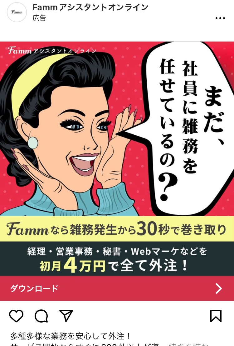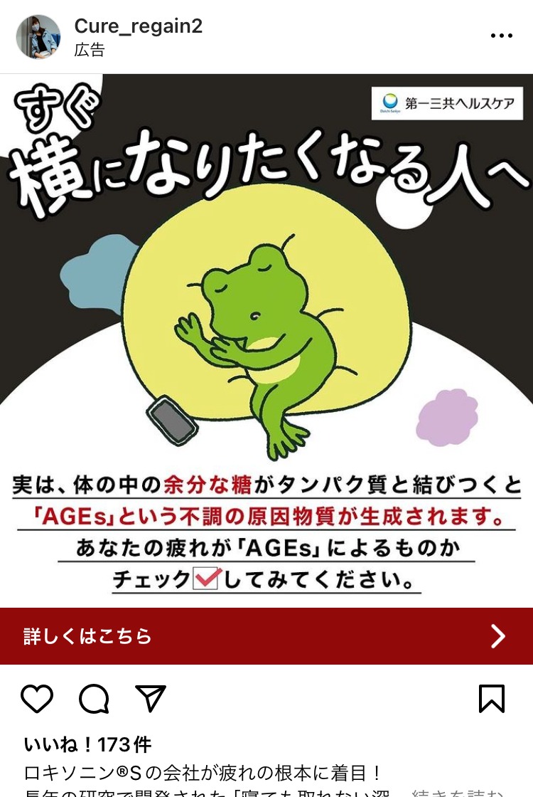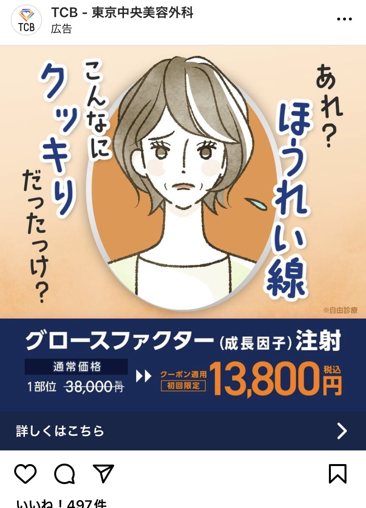 curves_japan ピンク 健康・整体・ウェルネス 女性 人物写真(モデル) この広告主のライブラリをみる K2アカデミー あか マーケティング スクール・講座・コミュニティ 起業家・経営者 フリーランス テキストメイン この広告主のライブラリをみる coloso_japan ピンク スクール・講座・コミュニティ フリーランス 初心者 テキストメイン この広告主のライブラリをみる 佐々木みのり【尻活】 グレー 健康・整体・ウェルネス 女性 イラスト・図解 この広告主のライブラリをみる LINEヤフー for Business(LINEサービス) あお 広告運用・広告集客 起業家・経営者 イラスト・図解 この広告主のライブラリをみる ジオブースト むらさき BtoB・事業者向け 広告運用・広告集客 起業家・経営者 テキストメイン この広告主のライブラリをみる TCB – 東京中央美容外科 オレンジ・きいろ コスメ・美容サービス 女性 イラスト・図解 この広告主のライブラリをみる SNS広告Web集客 あお 広告運用・広告集客 起業家・経営者 テキストメイン この広告主のライブラリをみる Fammアシスタントオンライン あか BtoB・事業者向け 起業家・経営者 イラスト・図解 この広告主のライブラリをみる TCB – 東京中央美容外科 オレンジ・きいろ コスメ・美容サービス 女性 イラスト・図解 この広告主のライブラリをみる マイスピー あお BtoB・事業者向け スクール・講座・コミュニティ 起業家・経営者 フリーランス テキストメイン この広告主のライブラリをみる Cure_regain2 黒 健康・整体・ウェルネス 女性 男性 イラスト・図解 この広告主のライブラリをみる 白鳥マキ ピンク 恋愛・婚活・パートナーシップ スクール・講座・コミュニティ 女性 人物写真(モデル) この広告主のライブラリをみる sajione_official グレー 健康・整体・ウェルネス 女性 イラスト・図解 この広告主のライブラリをみる 紙とペンで本当の自分と繋がる “自動書記” ピンク スピリチュアル・占い スクール・講座・コミュニティ 女性 テキストメイン この広告主のライブラリをみる Natural KEI LAB あか コスメ・美容サービス 女性 人物写真(モデル) この広告主のライブラリをみる « 前へ 1 … 43 44 45 46 47 … 76 次へ »