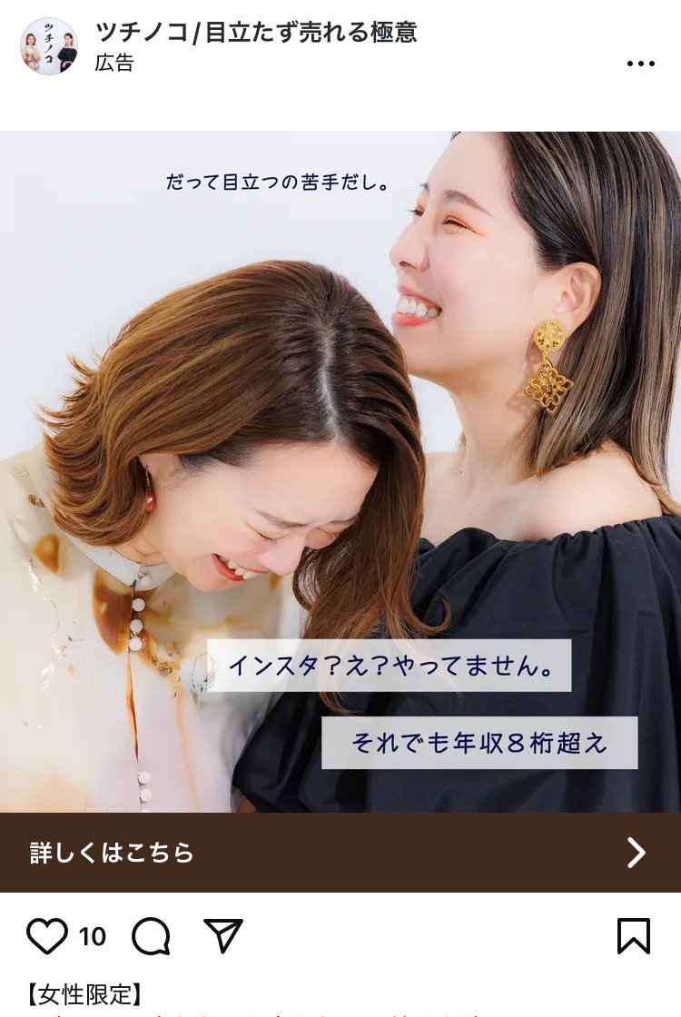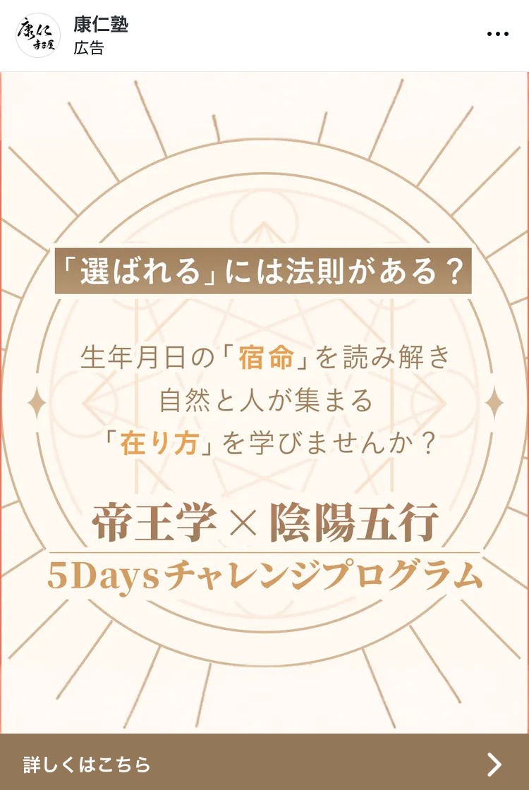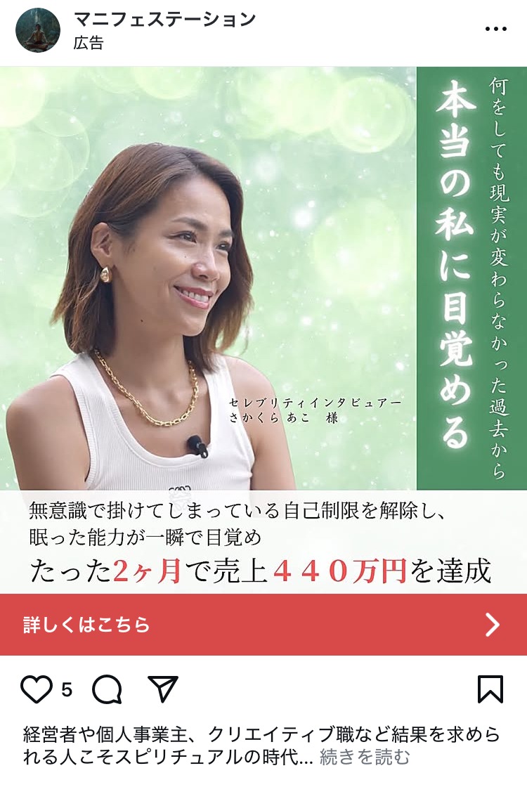 康仁塾 ベージュ・ゴールド スピリチュアル・占い スクール・講座・コミュニティ 起業家・経営者 女性 テキストメイン この広告主のライブラリをみる forest_pub_gallery むらさき スピリチュアル・占い スクール・講座・コミュニティ 初心者 人物写真(モデル) この広告主のライブラリをみる My Tipping Point あお 副業・初心者向けビジネス スクール・講座・コミュニティ 起業家・経営者 女性 イラスト・図解 この広告主のライブラリをみる yuko_noda_berry あか ファッション・アパレル スクール・講座・コミュニティ 起業家・経営者 女性 人物写真(モデル) この広告主のライブラリをみる yuko_noda_berry あか ファッション・アパレル スクール・講座・コミュニティ 起業家・経営者 女性 人物写真(モデル) この広告主のライブラリをみる revedelavie グレー ファッション・アパレル スクール・講座・コミュニティ フリーランス 女性 人物写真(本人) テキストメイン この広告主のライブラリをみる revedelavie 黒 ファッション・アパレル スクール・講座・コミュニティ フリーランス 女性 人物写真(モデル) テキストメイン この広告主のライブラリをみる chihironinagawachictivity 黒 健康・整体・ウェルネス コスメ・美容サービス 女性 テキストメイン この広告主のライブラリをみる hoshinohikiyose ベージュ・ゴールド スピリチュアル・占い 女性 テキストメイン この広告主のライブラリをみる lp_marketing_ma ベージュ・ゴールド デザイナー・クリエイター スクール・講座・コミュニティ フリーランス 女性 人物写真(本人) この広告主のライブラリをみる ツチノコ/目立たず売れる極意 ベージュ・ゴールド スクール・講座・コミュニティ SNS・LINE集客 起業家・経営者 女性 人物写真(本人) この広告主のライブラリをみる ひとり経営者のマーケティング大学 あお マーケティング スクール・講座・コミュニティ 起業家・経営者 テキストメイン この広告主のライブラリをみる onboarding_funnel_tokutake あお マーケティング スクール・講座・コミュニティ フリーランス 起業家・経営者 テキストメイン この広告主のライブラリをみる AI集客 オレンジ・きいろ BtoB・事業者向け 広告運用・広告集客 起業家・経営者 人物写真(モデル) この広告主のライブラリをみる daisuke.wasa あか マーケティング スクール・講座・コミュニティ 起業家・経営者 テキストメイン この広告主のライブラリをみる マニフェステーション みどり スピリチュアル・占い スクール・講座・コミュニティ 起業家・経営者 女性 人物写真(本人) この広告主のライブラリをみる « 前へ 1 … 48 49 50 51 52 … 76 次へ »