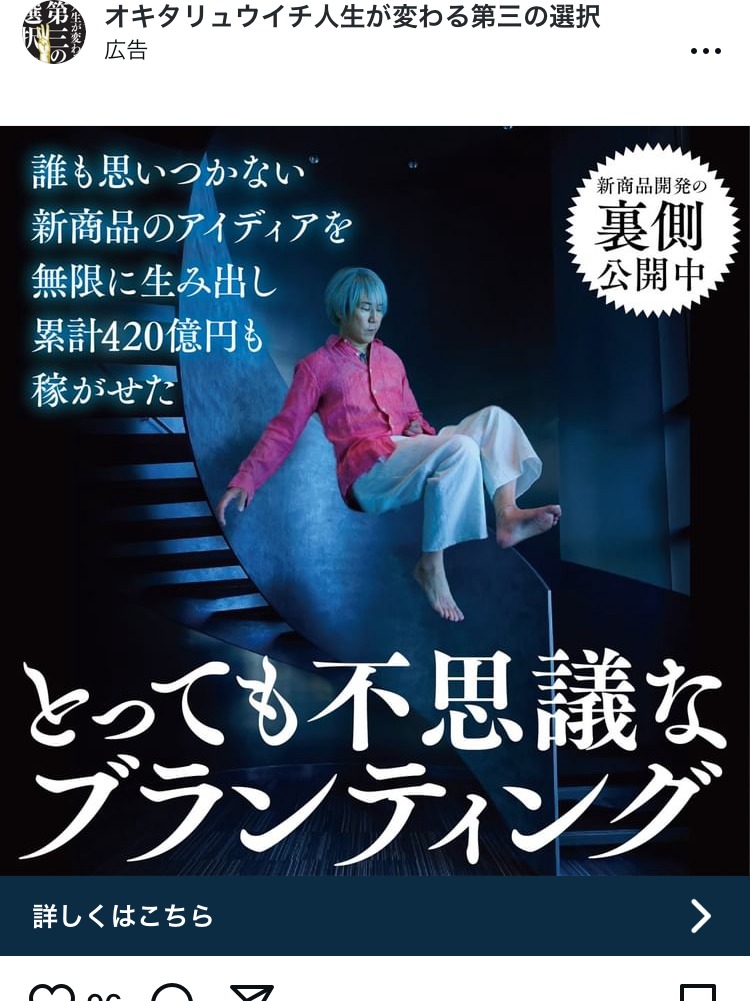 スピリチュアル商品のつくりかた あお スピリチュアル・占い スクール・講座・コミュニティ 起業家・経営者 女性 人物写真(モデル) この広告主のライブラリをみる 株式会社KACHIEL オレンジ・きいろ マネー・金融・保険 BtoB・事業者向け 起業家・経営者 人物写真(本人) テキストメイン この広告主のライブラリをみる lovemehp グレー スクール・講座・コミュニティ SNS・LINE集客 起業家・経営者 女性 人物写真(本人) この広告主のライブラリをみる 5minutes_fitness_kota_nishio ピンク 健康・整体・ウェルネス 男性 人物写真(モデル) この広告主のライブラリをみる nagase_yutaka_ 白 スピリチュアル・占い 初心者 テキストメイン この広告主のライブラリをみる fullsalon_school むらさき コスメ・美容サービス スクール・講座・コミュニティ 起業家・経営者 女性 人物写真(モデル) この広告主のライブラリをみる オキタリュウイチ人生が変わる第三の選択 むらさき PR・ブランディング マーケティング 起業家・経営者 人物写真(本人) この広告主のライブラリをみる 草ヶ谷和久 あお BtoB・事業者向け スクール・講座・コミュニティ 起業家・経営者 テキストメイン この広告主のライブラリをみる learningedge_official あお マーケティング スクール・講座・コミュニティ 起業家・経営者 テキストメイン この広告主のライブラリをみる sirouakahara あお 副業・初心者向けビジネス スクール・講座・コミュニティ 起業家・経営者 初心者 イラスト・図解 テキストメイン この広告主のライブラリをみる dlopdesign_yuri みどり デザイナー・クリエイター スクール・講座・コミュニティ 女性 初心者 人物写真(モデル) テキストメイン この広告主のライブラリをみる ゆとりのある暮らし あお 副業・初心者向けビジネス スクール・講座・コミュニティ 女性 初心者 イラスト・図解 この広告主のライブラリをみる amemiyajun3 黒 マーケティング SNS・LINE集客 起業家・経営者 フリーランス テキストメイン この広告主のライブラリをみる 経営者の【節税戦略】セミナー2023 茶 マネー・金融・保険 BtoB・事業者向け 起業家・経営者 人物写真(本人) この広告主のライブラリをみる atarajp ピンク 広告運用・広告集客 起業家・経営者 イラスト・図解 この広告主のライブラリをみる リチカ アイディスト オレンジ・きいろ マーケティング 広告運用・広告集客 起業家・経営者 人物写真(モデル) イラスト・図解 この広告主のライブラリをみる « 前へ 1 … 51 52 53 54 55 … 76 次へ »
