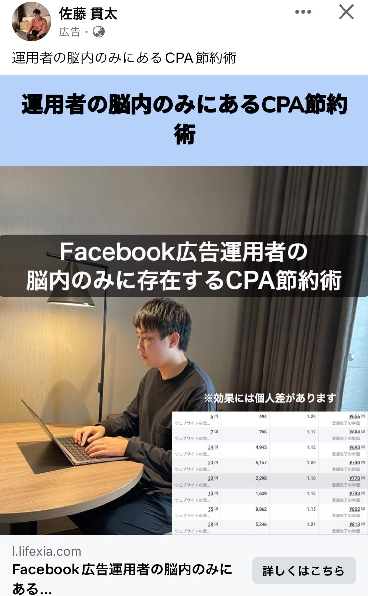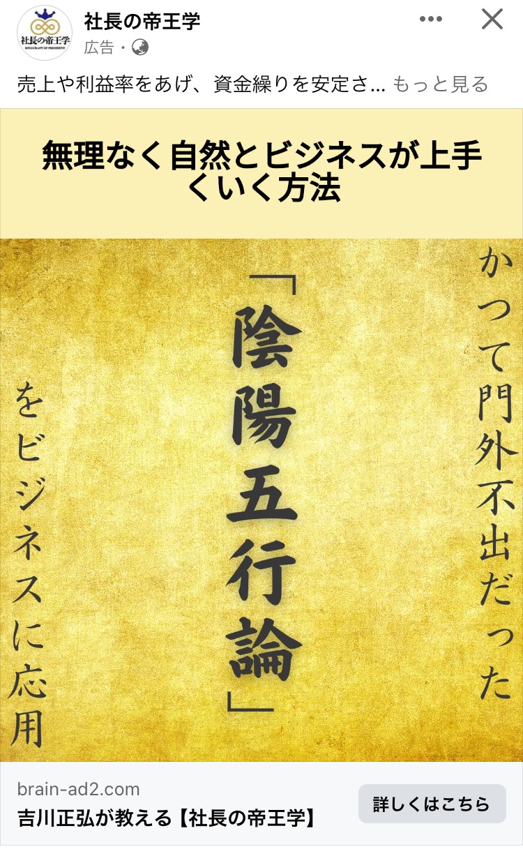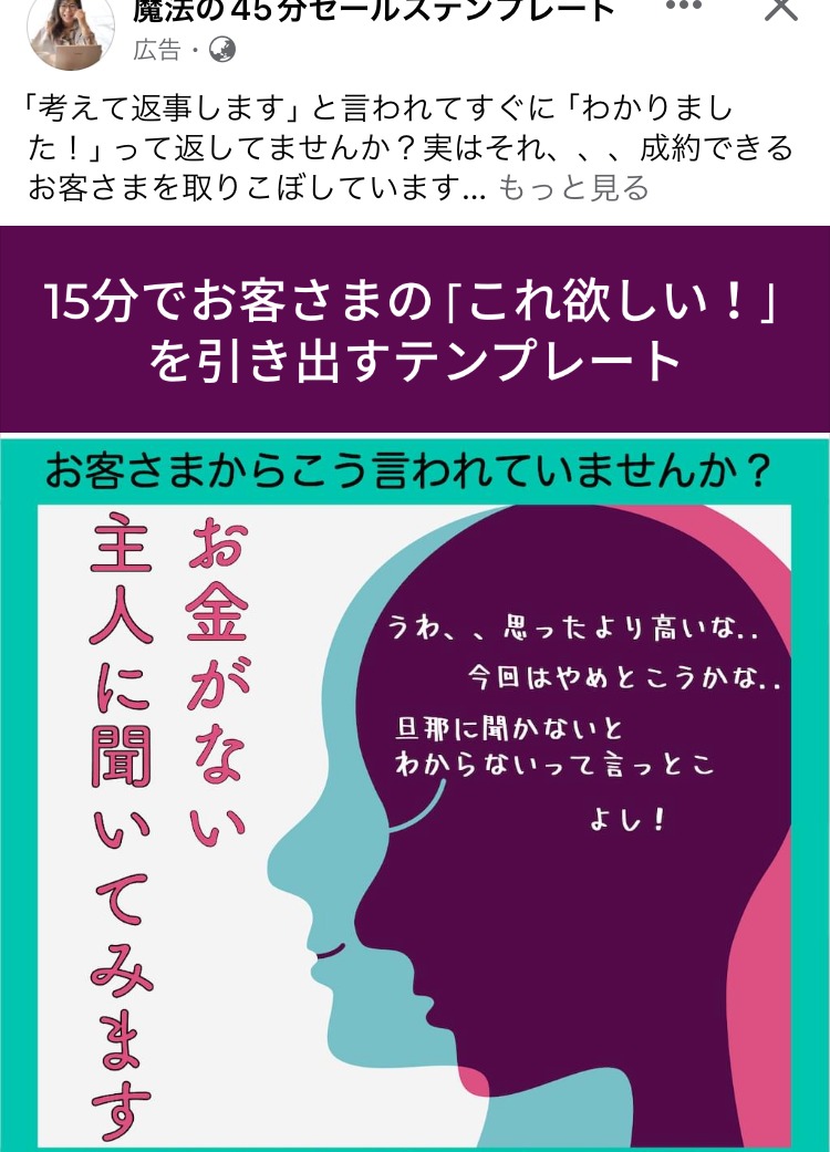 山口 拓哉 みどり マーケティング SNS・LINE集客 起業家・経営者 フリーランス 人物写真(本人) テキストメイン この広告主のライブラリをみる Roboma – ロボマ あお 広告運用・広告集客 起業家・経営者 イラスト・図解 この広告主のライブラリをみる プロダクトローンチの専門家 田中 祐一 みどり マーケティング 起業家・経営者 ビフォーアフター・比較 この広告主のライブラリをみる 全く新しい速読法「瞬読」 黒 スクール・講座・コミュニティ 起業家・経営者 初心者 イラスト・図解 この広告主のライブラリをみる 雨宮潤 黒 マーケティング SNS・LINE集客 起業家・経営者 フリーランス テキストメイン この広告主のライブラリをみる 詫間ゆき ピンク スクール・講座・コミュニティ SNS・LINE集客 起業家・経営者 テキストメイン この広告主のライブラリをみる スピリチュアル×マインドコーチ石丸 佐和子 ベージュ・ゴールド スピリチュアル・占い スクール・講座・コミュニティ 起業家・経営者 女性 イラスト・図解 この広告主のライブラリをみる 社長の帝王学 オレンジ・きいろ BtoB・事業者向け スクール・講座・コミュニティ 起業家・経営者 テキストメイン この広告主のライブラリをみる ブルースクレイ・ジャパン 株式会社 あお BtoB・事業者向け 広告運用・広告集客 起業家・経営者 テキストメイン この広告主のライブラリをみる K2アカデミー 茶 マーケティング スクール・講座・コミュニティ 起業家・経営者 フリーランス テキストメイン この広告主のライブラリをみる ウェビナー構築プログラム あお マーケティング スクール・講座・コミュニティ 起業家・経営者 フリーランス テキストメイン この広告主のライブラリをみる 佐藤 貫太 グレー 広告運用・広告集客 起業家・経営者 人物写真(本人) この広告主のライブラリをみる ロイヤルフォロワーマーケティング講座 黒 スクール・講座・コミュニティ SNS・LINE集客 起業家・経営者 初心者 テキストメイン この広告主のライブラリをみる 成島拓 ピンク SNS・LINE集客 起業家・経営者 フリーランス テキストメイン この広告主のライブラリをみる オンライン商品販売プロデュース むらさき マーケティング SNS・LINE集客 起業家・経営者 フリーランス テキストメイン この広告主のライブラリをみる 魔法の45分セールステンプレート むらさき 営業・セールス スクール・講座・コミュニティ 起業家・経営者 女性 イラスト・図解 この広告主のライブラリをみる 投稿のページ送り 前へ 1 … 9 10 11 … 44 次へ