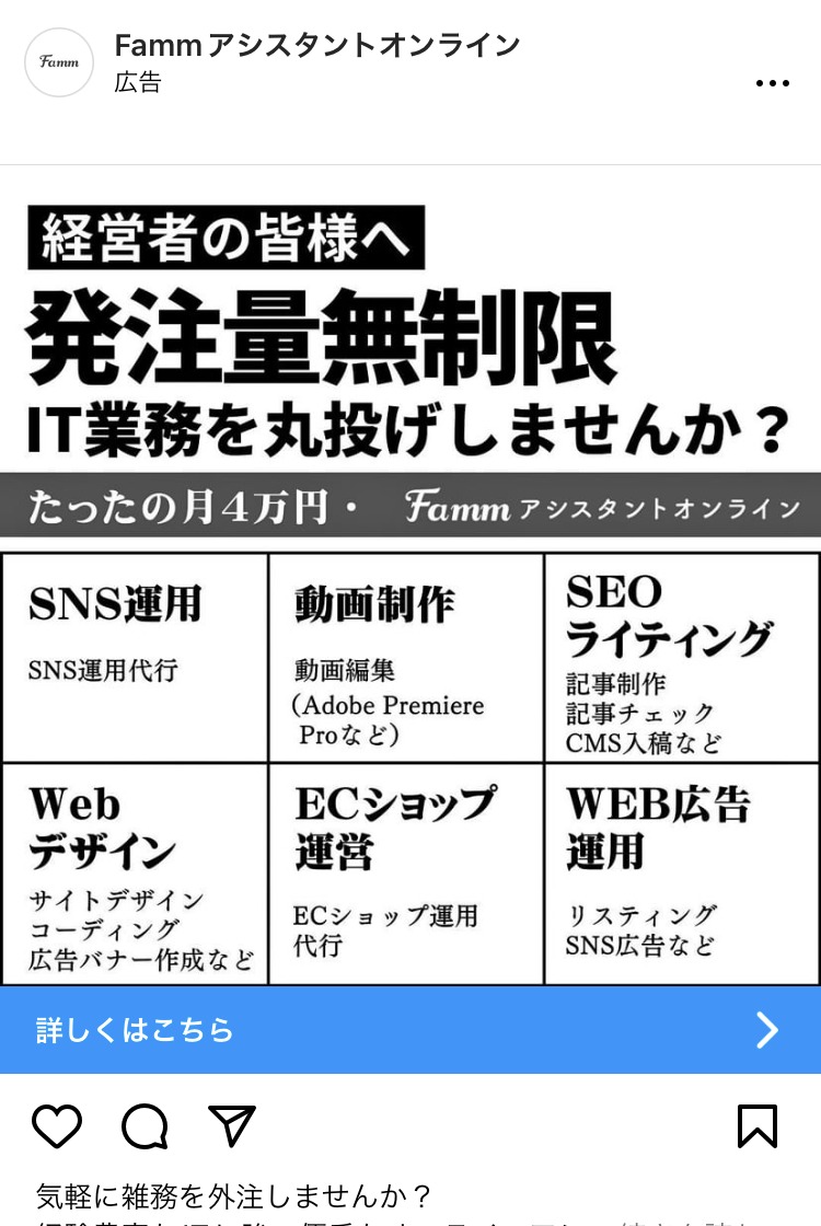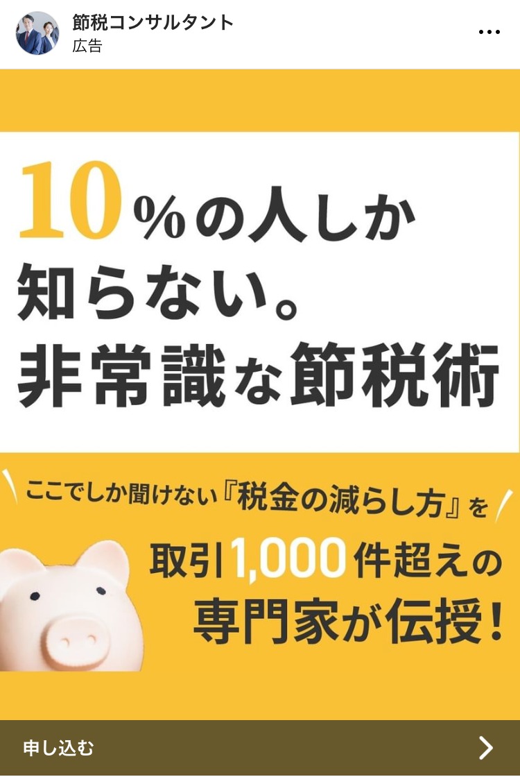 The New Age むらさき マーケティング スクール・講座・コミュニティ 起業家・経営者 女性 テキストメイン この広告主のライブラリをみる amexjp ベージュ・ゴールド マネー・金融・保険 起業家・経営者 男性 テキストメイン この広告主のライブラリをみる grandhimedic ベージュ・ゴールド 健康・整体・ウェルネス 起業家・経営者 テキストメイン この広告主のライブラリをみる リストビジネスラボ 白 広告運用・広告集客 起業家・経営者 テキストメイン この広告主のライブラリをみる ミッション リーダーズ アカデミー ピンク コーチング・心理学 スクール・講座・コミュニティ 起業家・経営者 女性 イラスト・図解 この広告主のライブラリをみる ゾーンに至り120%のパフォーマンスを発… 黒 コーチング・心理学 スクール・講座・コミュニティ 起業家・経営者 イラスト・図解 テキストメイン この広告主のライブラリをみる コンサル・cfo養成アカデミー みどり BtoB・事業者向け スクール・講座・コミュニティ 起業家・経営者 フリーランス テキストメイン この広告主のライブラリをみる バクラク あお マネー・金融・保険 BtoB・事業者向け 起業家・経営者 テキストメイン この広告主のライブラリをみる HowMa-ハウマ あお 不動産・住まい 起業家・経営者 テキストメイン この広告主のライブラリをみる 節税コンサルタント オレンジ・きいろ マネー・金融・保険 起業家・経営者 テキストメイン この広告主のライブラリをみる 最強クレジットカードガイド オレンジ・きいろ マネー・金融・保険 起業家・経営者 テキストメイン この広告主のライブラリをみる Famm アシスタントオンライン あお マーケティング BtoB・事業者向け 起業家・経営者 テキストメイン この広告主のライブラリをみる ChatGPT講座 オレンジ・きいろ スクール・講座・コミュニティ 起業家・経営者 イラスト・図解 この広告主のライブラリをみる 芝先 平 あお 営業・セールス スクール・講座・コミュニティ 起業家・経営者 フリーランス イラスト・図解 テキストメイン この広告主のライブラリをみる いつも。- itsumo オレンジ・きいろ BtoB・事業者向け 広告運用・広告集客 起業家・経営者 イラスト・図解 この広告主のライブラリをみる 小田真嘉 あか 健康・整体・ウェルネス コーチング・心理学 起業家・経営者 テキストメイン この広告主のライブラリをみる 投稿のページ送り 前へ 1 … 15 16 17 … 44 次へ