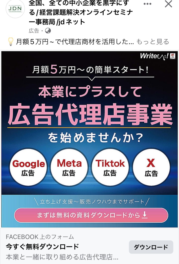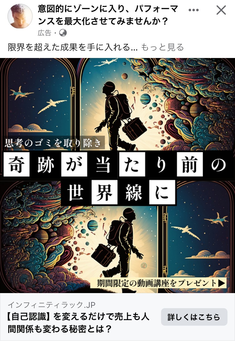 AIR Design(エアデザイン) ピンク 広告運用・広告集客 起業家・経営者 テキストメイン この広告主のライブラリをみる The Trade Desk あお マーケティング 広告運用・広告集客 起業家・経営者 人物写真(モデル) この広告主のライブラリをみる 全国、全ての中小企業を黒字にする/経営課題解決オンラインセミナー事務局/jdネット あお BtoB・事業者向け 広告運用・広告集客 起業家・経営者 テキストメイン この広告主のライブラリをみる TI-Meo あお マーケティング 広告運用・広告集客 起業家・経営者 人物写真(モデル) この広告主のライブラリをみる 代理店チェッカー あお 広告運用・広告集客 起業家・経営者 テキストメイン この広告主のライブラリをみる 株式会社 Genova Design あお BtoB・事業者向け 起業家・経営者 人物写真(モデル) この広告主のライブラリをみる 歯科代行.com あお BtoB・事業者向け スクール・講座・コミュニティ 起業家・経営者 人物写真(モデル) テキストメイン この広告主のライブラリをみる Stripe むらさき マネー・金融 BtoB・事業者向け 起業家・経営者 テキストメイン この広告主のライブラリをみる 意図的にゾーンに入り、パフォーマンスを最大化させてみませんか? あお コーチング・心理学 スクール・講座・コミュニティ 起業家・経営者 イラスト・図解 この広告主のライブラリをみる Riccaブランディングスクール ピンク PR・ブランディング スクール・講座・コミュニティ 起業家・経営者 女性 人物写真(本人) テキストメイン この広告主のライブラリをみる 意図的にゾーンに入り、パフォーマンスを最大化させてみませんか? 黒 コーチング・心理学 スクール・講座・コミュニティ 起業家・経営者 イラスト・図解 この広告主のライブラリをみる Salesforce オレンジ・きいろ マーケティング BtoB・事業者向け 起業家・経営者 イラスト・図解 この広告主のライブラリをみる Roboma – ロボマ あお 広告運用・広告集客 起業家・経営者 イラスト・図解 この広告主のライブラリをみる Slack あお マーケティング BtoB・事業者向け 起業家・経営者 イラスト・図解 この広告主のライブラリをみる フォレスト出版 オレンジ・きいろ コーチング・心理学 スクール・講座・コミュニティ 起業家・経営者 人物写真(本人) テキストメイン この広告主のライブラリをみる 田原 靖識 ピンク BtoB・事業者向け スクール・講座・コミュニティ 起業家・経営者 フリーランス 人物写真(本人) テキストメイン この広告主のライブラリをみる 投稿のページ送り 前へ 1 … 4 5 6 … 44 次へ