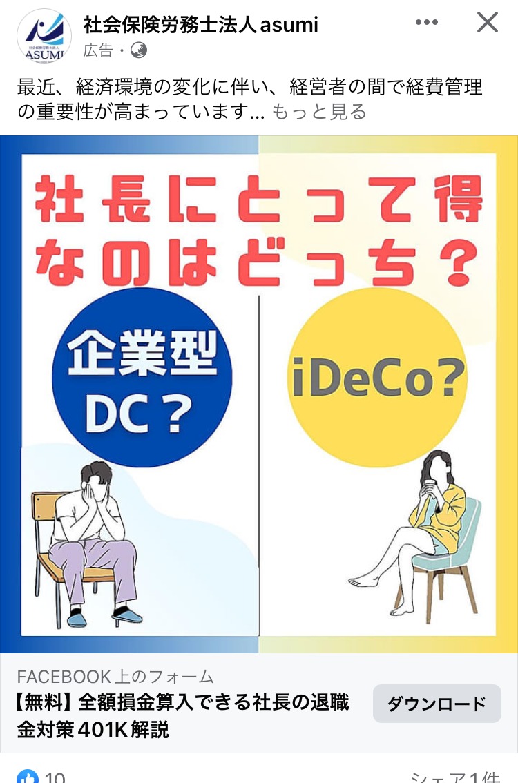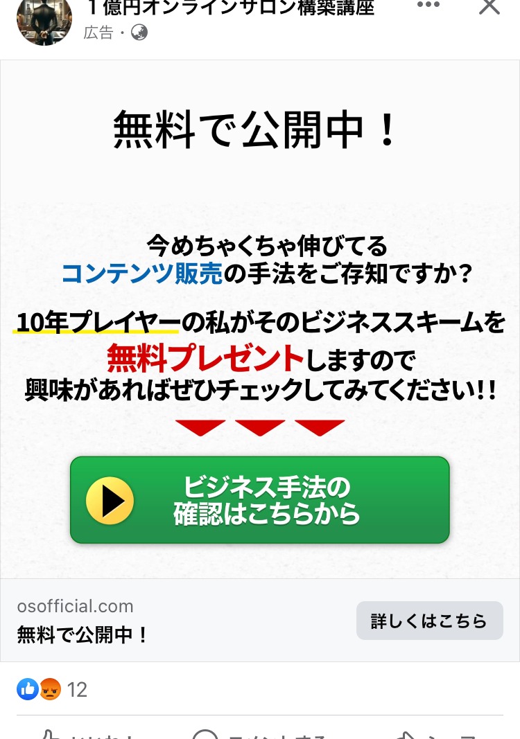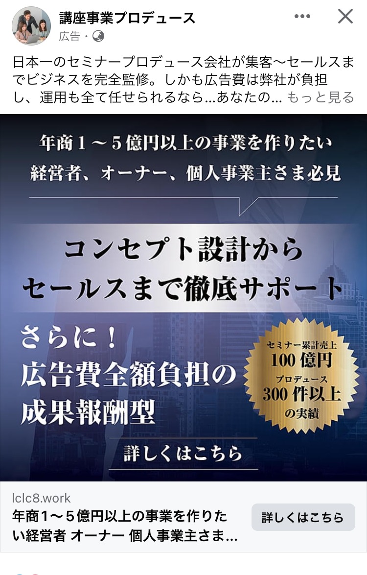 SONICJAM あお マーケティング 広告運用・広告集客 起業家・経営者 イラスト・図解 この広告主のライブラリをみる NBCインターナショナル むらさき BtoB・事業者向け 起業家・経営者 人物写真(モデル) この広告主のライブラリをみる 社会保険労務士法人 asumi オレンジ・きいろ マネー・金融・保険 BtoB・事業者向け 起業家・経営者 イラスト・図解 この広告主のライブラリをみる 横山直宏 白 広告運用・広告集客 スクール・講座・コミュニティ 起業家・経営者 フリーランス イラスト・図解 この広告主のライブラリをみる 長沢伶一【神に仕事をさせる9つの空間】 グレー スピリチュアル・占い スクール・講座・コミュニティ 起業家・経営者 イラスト・図解 この広告主のライブラリをみる ヴォルテックス 次元上昇の渦 あか スピリチュアル・占い スクール・講座・コミュニティ 起業家・経営者 初心者 イラスト・図解 テキストメイン この広告主のライブラリをみる 採用コンセプト作成代行 むらさき PR・ブランディング 求人・採用 起業家・経営者 イラスト・図解 この広告主のライブラリをみる クリ博ダイレクト オレンジ・きいろ 求人・採用 起業家・経営者 イラスト・図解 テキストメイン この広告主のライブラリをみる 松山隼 白 スクール・講座・コミュニティ SNS・LINE集客 起業家・経営者 フリーランス テキストメイン この広告主のライブラリをみる 早川@キャッチコピーの魔術 むらさき ライティング・コピーライティング スクール・講座・コミュニティ 起業家・経営者 フリーランス テキストメイン この広告主のライブラリをみる LINE友だち追加計測ツール【L-ad】 むらさき 広告運用・広告集客 起業家・経営者 フリーランス テキストメイン この広告主のライブラリをみる プロダクトローンチの専門家 田中祐一 ベージュ・ゴールド マーケティング スクール・講座・コミュニティ フリーランス 起業家・経営者 テキストメイン この広告主のライブラリをみる 講座事業プロデュース あお BtoB・事業者向け スクール・講座・コミュニティ 起業家・経営者 テキストメイン この広告主のライブラリをみる 山岡尚樹〜波動使い養成〜 あお スピリチュアル・占い スクール・講座・コミュニティ 起業家・経営者 テキストメイン この広告主のライブラリをみる 徳武 輝彦 あお マーケティング スクール・講座・コミュニティ 起業家・経営者 フリーランス イラスト・図解 この広告主のライブラリをみる 1億円オンラインサロン構築講座 みどり 副業・初心者向けビジネス スクール・講座・コミュニティ 起業家・経営者 初心者 テキストメイン この広告主のライブラリをみる 投稿のページ送り 前へ 1 … 6 7 8 … 44 次へ