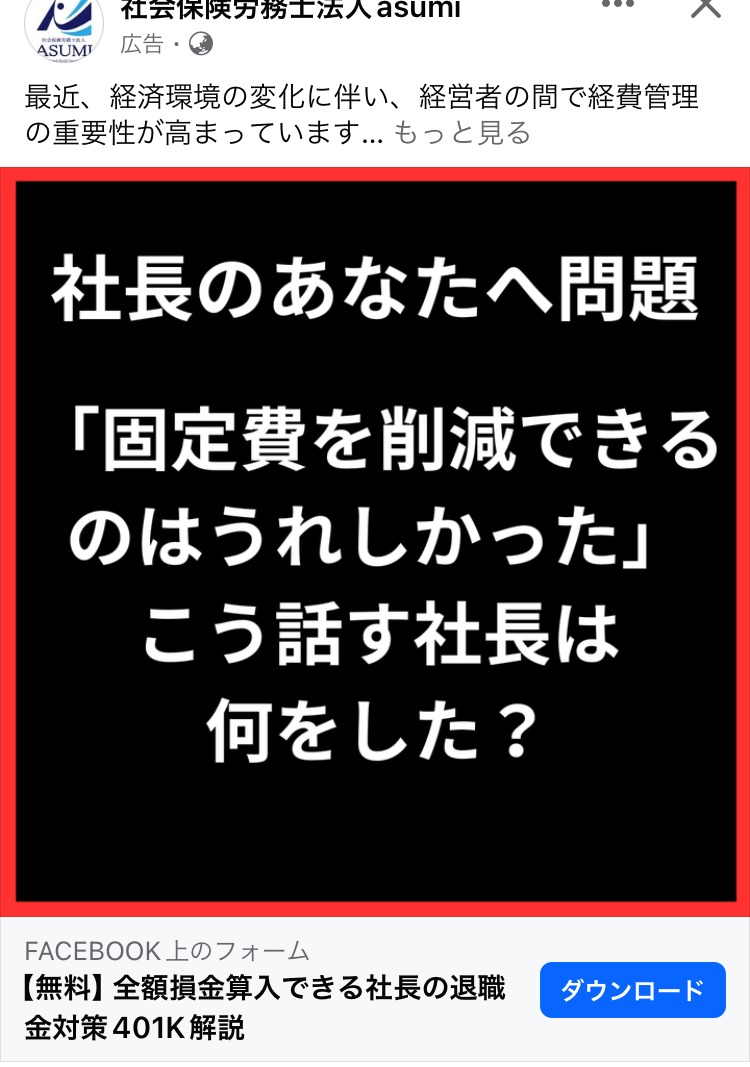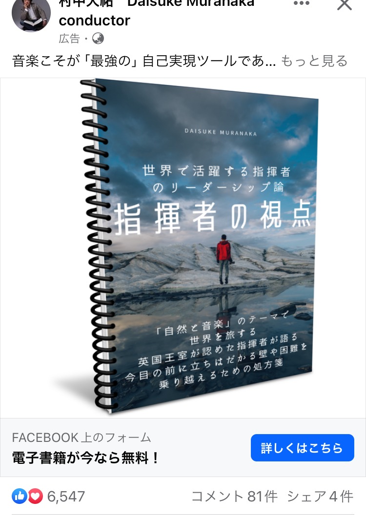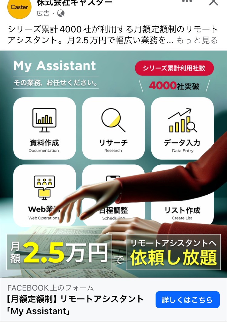 講座事業プロデュース ピンク BtoB・事業者向け スクール・講座・コミュニティ 起業家・経営者 人物写真(モデル) テキストメイン この広告主のライブラリをみる 株式会社キャスター ベージュ・ゴールド BtoB・事業者向け 起業家・経営者 イラスト・図解 この広告主のライブラリをみる Sakiyomi みどり スクール・講座・コミュニティ SNS・LINE集客 起業家・経営者 初心者 イラスト・図解 この広告主のライブラリをみる 社会保険労務士法人 asumi あか マネー・金融・保険 BtoB・事業者向け 起業家・経営者 テキストメイン この広告主のライブラリをみる SONICJAM あお マーケティング 広告運用・広告集客 起業家・経営者 イラスト・図解 この広告主のライブラリをみる NHN テコラス株式会社 あお BtoB・事業者向け 起業家・経営者 イラスト・図解 この広告主のライブラリをみる 全く新しい速読法「瞬読」 あか スクール・講座・コミュニティ 起業家・経営者 男性 イラスト・図解 この広告主のライブラリをみる 芝先平 あお スクール・講座・コミュニティ SNS・LINE集客 起業家・経営者 フリーランス テキストメイン この広告主のライブラリをみる スピリチャル商品のつくりかた みどり スピリチュアル・占い スクール・講座・コミュニティ 起業家・経営者 女性 人物写真(モデル) この広告主のライブラリをみる 村中大祐 Daisuke Muranaka conductor あお コーチング・心理学 スクール・講座・コミュニティ 起業家・経営者 テキストメイン この広告主のライブラリをみる 株式会社モンゴロイド あお マーケティング 広告運用・広告集客 起業家・経営者 テキストメイン この広告主のライブラリをみる データ分析で地味な起業【データオーガナイザー養成講座】 茶 副業・初心者向けビジネス スクール・講座・コミュニティ 起業家・経営者 初心者 テキストメイン この広告主のライブラリをみる ずぼら fire むらさき 副業・初心者向けビジネス スクール・講座・コミュニティ 起業家・経営者 初心者 イラスト・図解 この広告主のライブラリをみる Go-on株式会社 ピンク BtoB・事業者向け 広告運用・広告集客 起業家・経営者 人物写真(モデル) テキストメイン この広告主のライブラリをみる オンライン商品販売プロデュース 白 マーケティング 広告運用・広告集客 起業家・経営者 イラスト・図解 この広告主のライブラリをみる Brandist みどり BtoB・事業者向け 広告運用・広告集客 起業家・経営者 人物写真(モデル) この広告主のライブラリをみる 投稿のページ送り 前へ 1 … 8 9 10 … 44 次へ