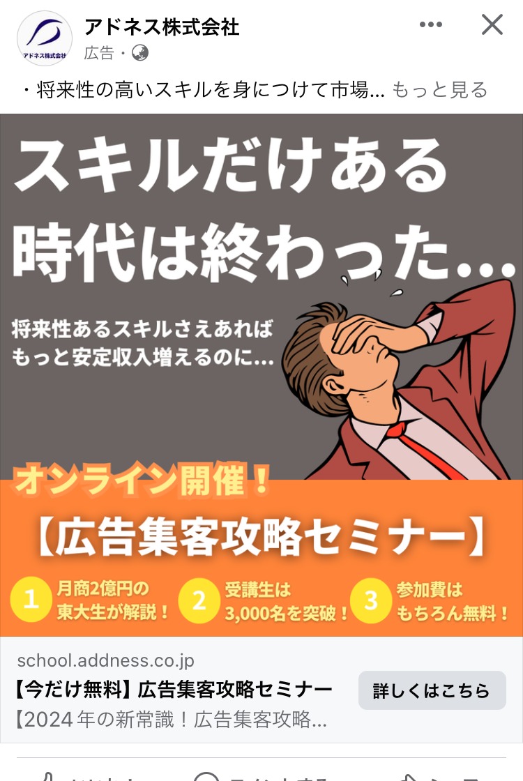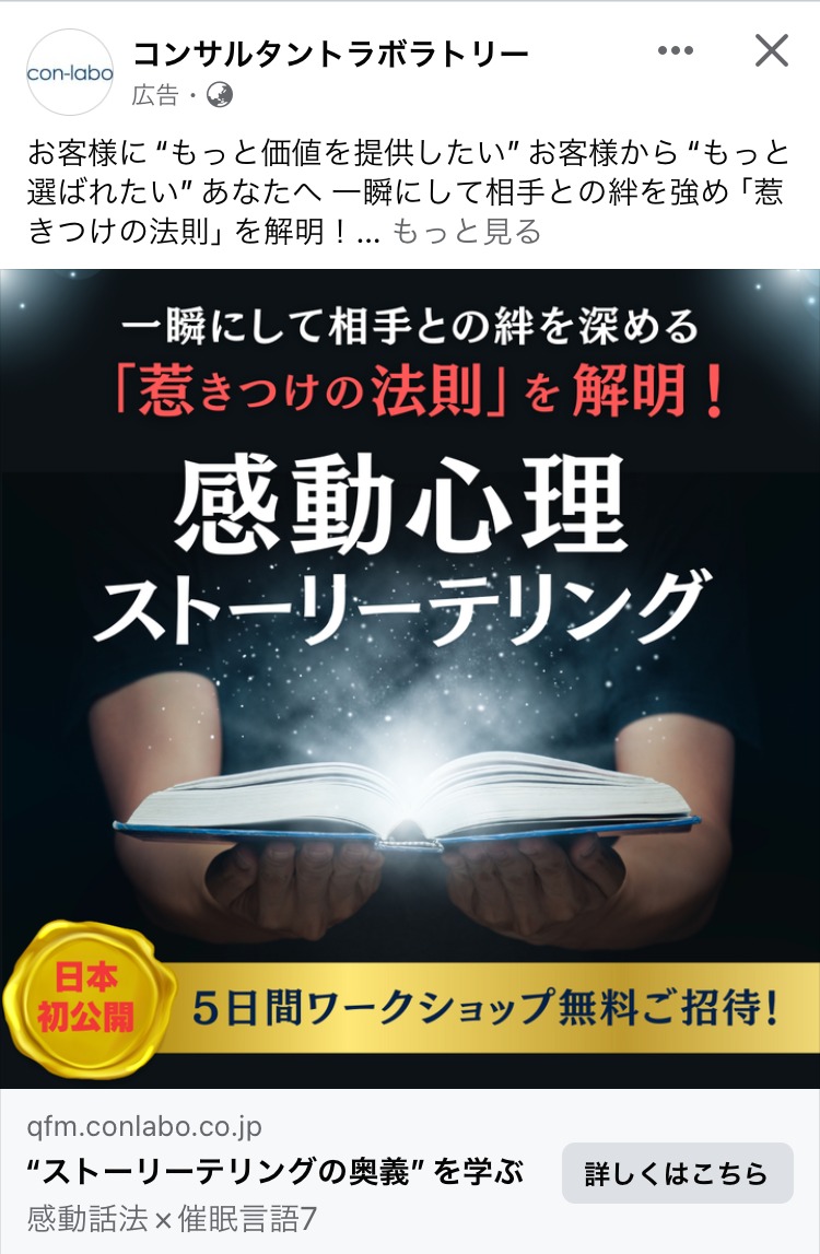 Online ApC Academy ピンク ライティング・コピーライティング スクール・講座・コミュニティ フリーランス 初心者 テキストメイン この広告主のライブラリをみる 山口 拓哉 みどり マーケティング SNS・LINE集客 起業家・経営者 フリーランス 人物写真(本人) テキストメイン この広告主のライブラリをみる 雨宮潤 黒 マーケティング SNS・LINE集客 フリーランス 起業家・経営者 テキストメイン この広告主のライブラリをみる K2アカデミー 茶 マーケティング スクール・講座・コミュニティ 起業家・経営者 フリーランス テキストメイン この広告主のライブラリをみる ウェビナー構築プログラム あお マーケティング スクール・講座・コミュニティ 起業家・経営者 フリーランス テキストメイン この広告主のライブラリをみる ミリオンデザインスクール ピンク デザイナー・クリエイター スクール・講座・コミュニティ フリーランス 初心者 イラスト・図解 テキストメイン この広告主のライブラリをみる 成島拓 ピンク SNS・LINE集客 起業家・経営者 フリーランス テキストメイン この広告主のライブラリをみる オンライン商品販売プロデュース むらさき マーケティング SNS・LINE集客 起業家・経営者 フリーランス テキストメイン この広告主のライブラリをみる コンサルタントラボラトリー 黒 コーチング・心理学 スクール・講座・コミュニティ 起業家・経営者 フリーランス テキストメイン この広告主のライブラリをみる アドネス株式会社 あか 広告運用・広告集客 スクール・講座・コミュニティ 起業家・経営者 フリーランス イラスト・図解 この広告主のライブラリをみる タツヤ-Tatusya あか 広告運用・広告集客 SNS・LINE集客 起業家・経営者 フリーランス テキストメイン この広告主のライブラリをみる プロダクトローンチの専門家 田中祐一 白 マーケティング スクール・講座・コミュニティ フリーランス 起業家・経営者 人物写真(モデル) テキストメイン この広告主のライブラリをみる 芝先 平 ベージュ・ゴールド スクール・講座・コミュニティ SNS・LINE集客 起業家・経営者 フリーランス 人物写真(本人) テキストメイン この広告主のライブラリをみる 佐藤 貫太 あお 広告運用・広告集客 起業家・経営者 フリーランス テキストメイン この広告主のライブラリをみる フリーランス協会 あか デザイナー・クリエイター フリーランス イラスト・図解 この広告主のライブラリをみる SOKUDAN(ソクダン) オレンジ・きいろ 求人・採用 副業・初心者向けビジネス フリーランス 初心者 イラスト・図解 この広告主のライブラリをみる 投稿のページ送り 前へ 1 … 3 4 5 … 15 次へ