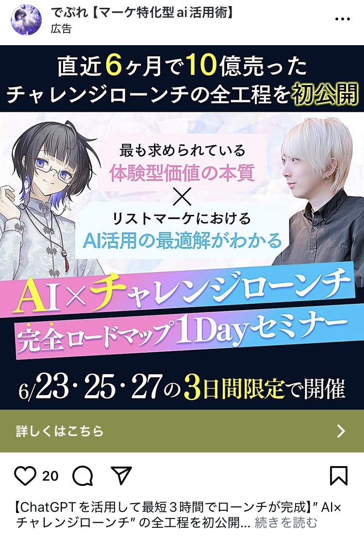 AItools 白 マーケティング スクール・講座・コミュニティ 起業家・経営者 フリーランス イラスト・図解 テキストメイン この広告主のライブラリをみる K2アカデミー あか マーケティング スクール・講座・コミュニティ 起業家・経営者 フリーランス テキストメイン この広告主のライブラリをみる coloso_japan ピンク スクール・講座・コミュニティ フリーランス 初心者 テキストメイン この広告主のライブラリをみる マイスピー あお BtoB・事業者向け スクール・講座・コミュニティ 起業家・経営者 フリーランス テキストメイン この広告主のライブラリをみる 100_kigyo 茶 スクール・講座・コミュニティ SNS・LINE集客 起業家・経営者 フリーランス テキストメイン この広告主のライブラリをみる マーケティングプロパートナーズ あお 求人・採用 マーケティング フリーランス 人物写真(モデル) この広告主のライブラリをみる LINE友だち追加計測ツール【L-ad】 あか 広告運用・広告集客 SNS・LINE集客 フリーランス 起業家・経営者 テキストメイン この広告主のライブラリをみる hubspot オレンジ・きいろ マーケティング BtoB・事業者向け 起業家・経営者 フリーランス イラスト・図解 テキストメイン この広告主のライブラリをみる オンライン販売戦略アカデミー あお 広告運用・広告集客 スクール・講座・コミュニティ 起業家・経営者 フリーランス 人物写真(モデル) テキストメイン この広告主のライブラリをみる 田中祐一 黒 マーケティング スクール・講座・コミュニティ 起業家・経営者 フリーランス イラスト・図解 この広告主のライブラリをみる でぷれ【マーケ特化型ai活用術】 むらさき マーケティング スクール・講座・コミュニティ 起業家・経営者 フリーランス イラスト・図解 人物写真(本人) この広告主のライブラリをみる revedelavie グレー ファッション・アパレル スクール・講座・コミュニティ フリーランス 女性 人物写真(本人) テキストメイン この広告主のライブラリをみる revedelavie 黒 ファッション・アパレル スクール・講座・コミュニティ フリーランス 女性 人物写真(モデル) テキストメイン この広告主のライブラリをみる lp_marketing_ma ベージュ・ゴールド デザイナー・クリエイター スクール・講座・コミュニティ フリーランス 女性 人物写真(本人) この広告主のライブラリをみる onboarding_funnel_tokutake あお マーケティング スクール・講座・コミュニティ フリーランス 起業家・経営者 テキストメイン この広告主のライブラリをみる zentarouogawa あお スクール・講座・コミュニティ 起業家・経営者 フリーランス テキストメイン この広告主のライブラリをみる 投稿のページ送り 前へ 1 … 6 7 8 … 15 次へ